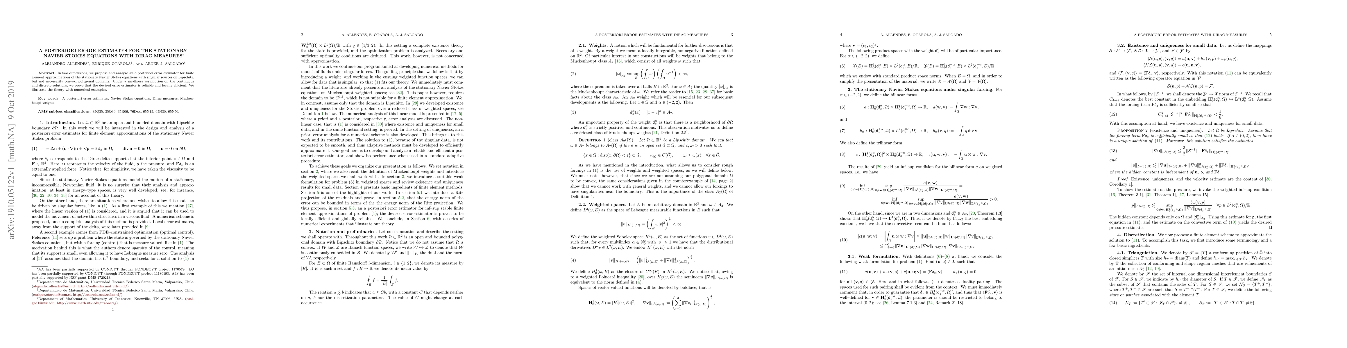 This paper proposes an a posteriori error estimator for finite element approximations of the stationary Navier Stokes equations in two dimensions, especially when dealing with singular sources. The estimator is shown to be reliable and locally efficient under certain assumptions, and numerical examples validate the theoretical findings.