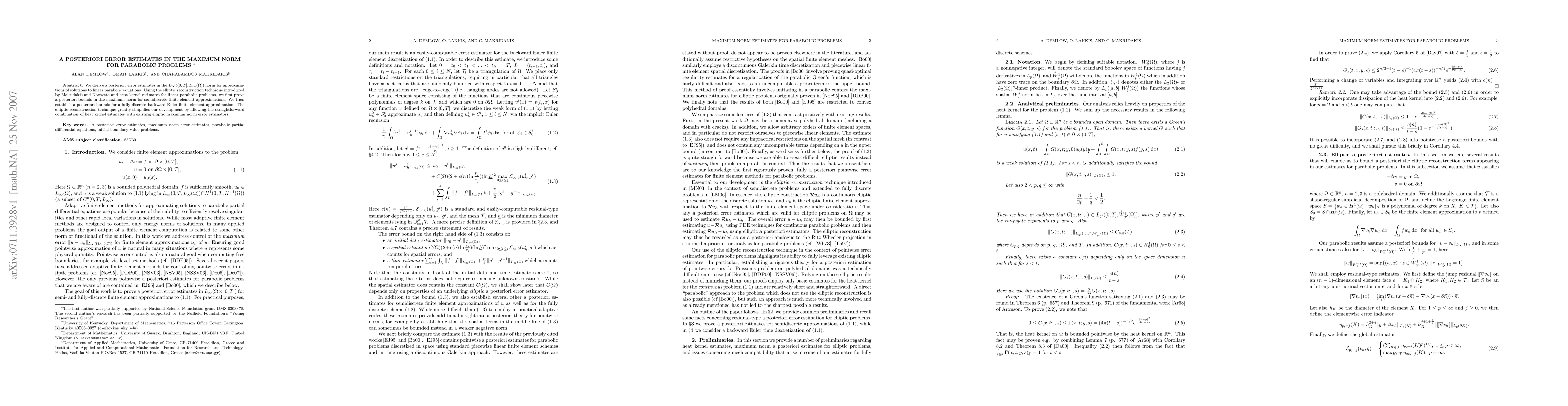 This paper derives a posteriori error estimates in the $L_\infty((0,T];L_\infty(\Omega))$ norm for finite element approximations of linear parabolic equations using elliptic reconstruction and heat kernel estimates. The method simplifies the combination of these techniques with existing error estimators.