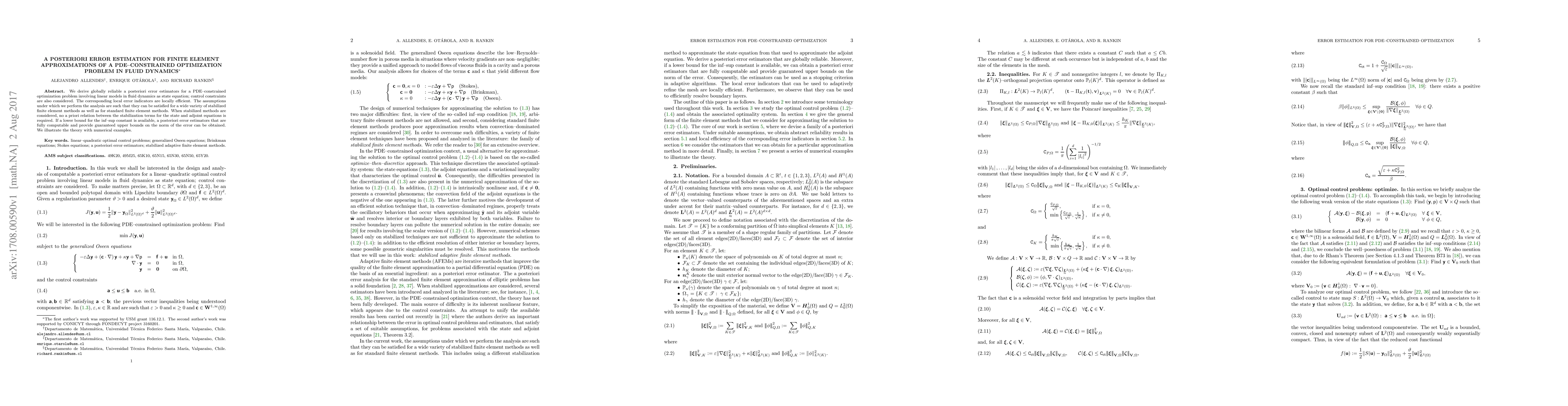 This paper develops globally reliable a posteriori error estimators for finite element approximations in PDE-constrained optimization problems in fluid dynamics, ensuring local efficiency and applicability to various stabilized and standard methods. Numerical examples demonstrate the practical effectiveness of the proposed estimators.