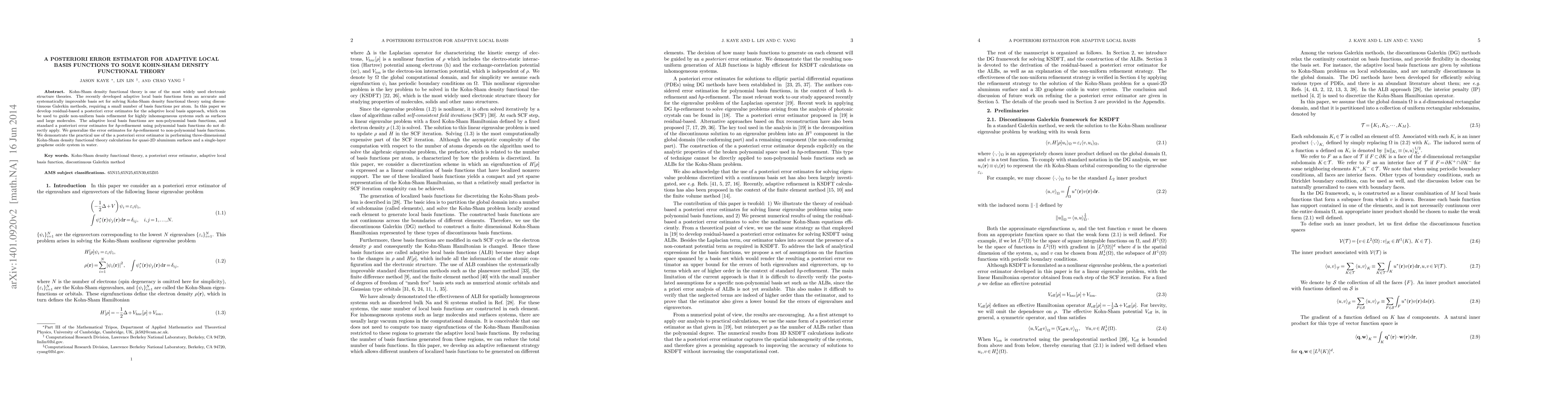 This paper develops residual-based a posteriori error estimates for adaptive local basis functions in Kohn-Sham density functional theory, enabling non-uniform basis refinement for complex systems. It generalizes $hp$-refinement error estimates to non-polynomial basis functions and demonstrates their application in calculations for quasi-2D aluminum surfaces and graphene oxide.
