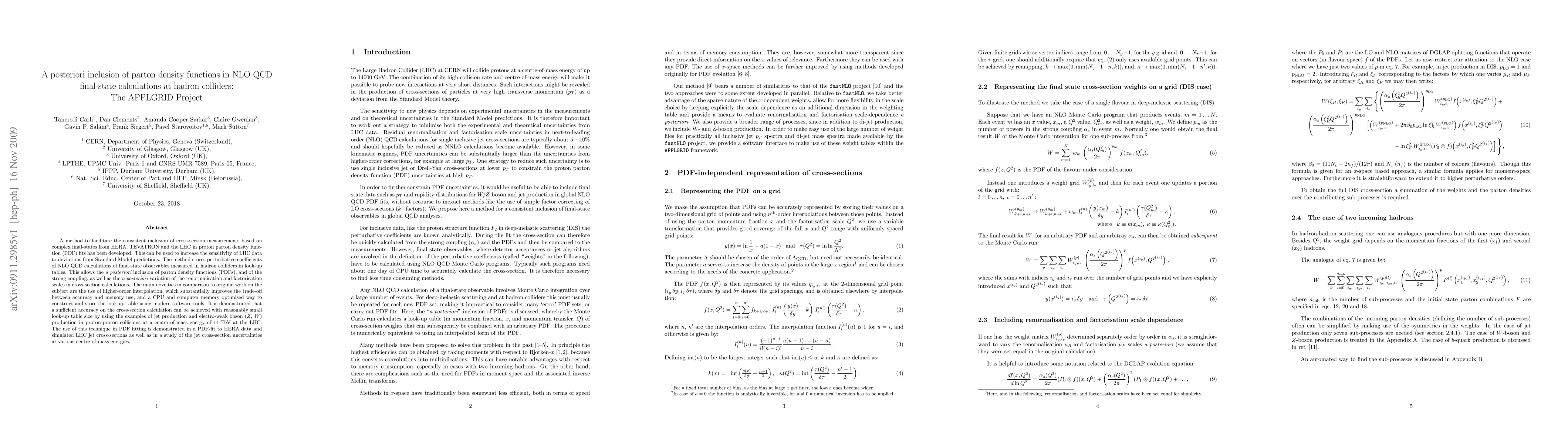 A method to facilitate the consistent inclusion of cross-section measurements based on complex final-states from HERA, TEVATRON and the LHC in proton parton density function (PDF) fits has been developed. This can be used to increase the sensitivity of LHC data to deviations from Standard Model predictions. The method stores perturbative coefficients of NLO QCD calculations of final-state observables measured in hadron colliders in look-up tables. This allows the posteriori inclusion of parton density functions (PDFs), and of the strong coupling, as well as the a posteriori variation of the renormalisation and factorisation scales in cross-section calculations. The main novelties in comparison to original work on the subject are the use of higher-order interpolation, which substantially improves the trade-off between accuracy and memory use, and a CPU and computer memory optimised way to construct and store the look-up table using modern software tools. It is demonstrated that a sufficient accuracy on the cross-section calculation can be achieved with reasonably small look-up table size by using the examples of jet production and electro-weak boson (Z, W) production in proton-proton collisions at a center-of-mass energy of 14 TeV at the LHC. The use of this technique in PDF fitting is demonstrated in a PDF-fit to HERA data and simulated LHC jet cross-sections as well as in a study of the jet cross-section uncertainties at various centre-of-mass energies.