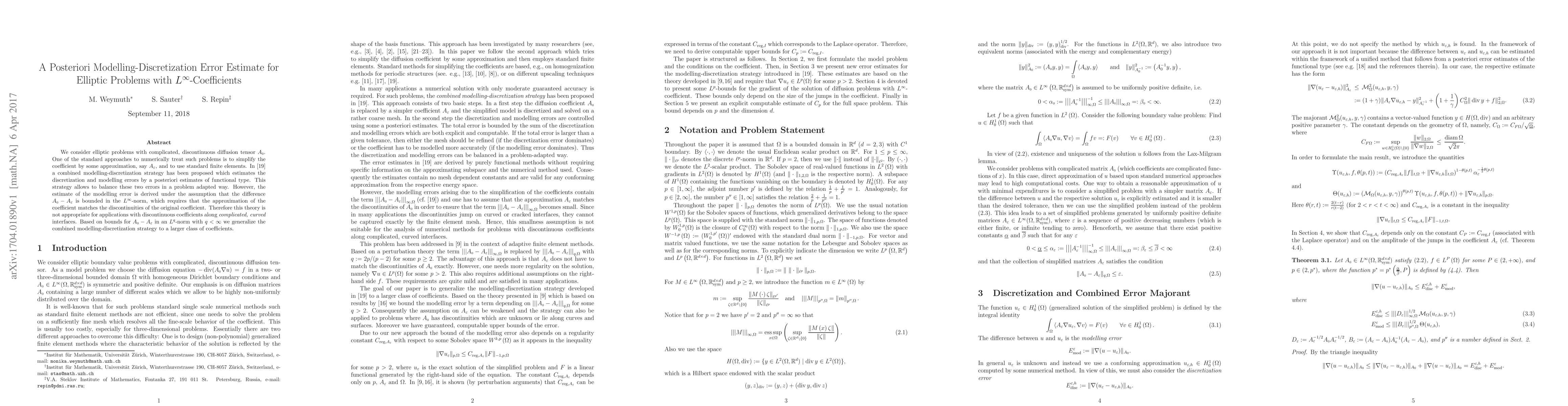 We consider elliptic problems with complicated, discontinuous diffusion tensor $A_{\scriptscriptstyle 0} $. One of the standard approaches to numerically treat such problems is to simplify the coefficient by some approximation, say $A_{\varepsilon}$, and to use standard finite elements. In \cite{Repin2012} a combined modelling-discretization strategy has been proposed which estimates the discretization and modelling errors by a posteriori estimates of functional type. This strategy allows to balance these two errors in a problem adapted way. However, the estimate of the modelling error is derived under the assumption that the difference $A_{\scriptscriptstyle 0} -A_{\varepsilon}$ is bounded in the $L^{\infty}$-norm, which requires that the approximation of the coefficient matches the discontinuities of the original coefficient. Therefore this theory is not appropriate for applications with discontinuous coefficients along \textit{complicated, curved} interfaces. Based on bounds for $A_{\scriptscriptstyle 0} -A_{\varepsilon}$ in an $L^{q}$-norm with $q<\infty$ we generalize the combined modelling-discretization strategy to a larger class of coefficients.