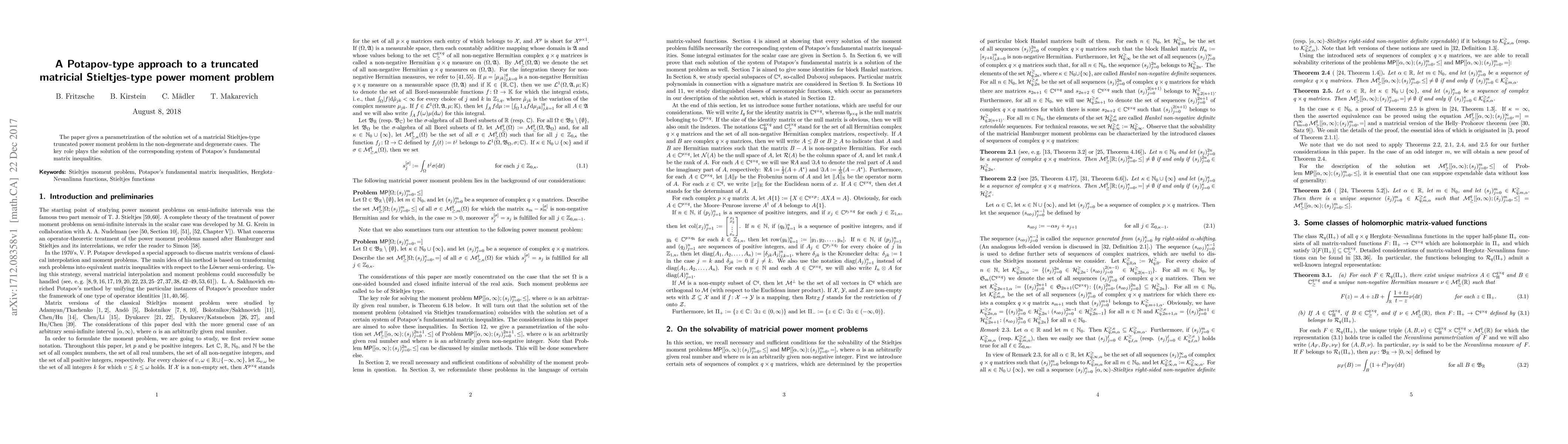 Summary: This paper presents a parametrization of solutions for the truncated matricial Stieltjes-type power moment problem, distinguishing between non-degenerate and degenerate cases, with the solution derived from solving Potapov's fundamental matrix inequalities.