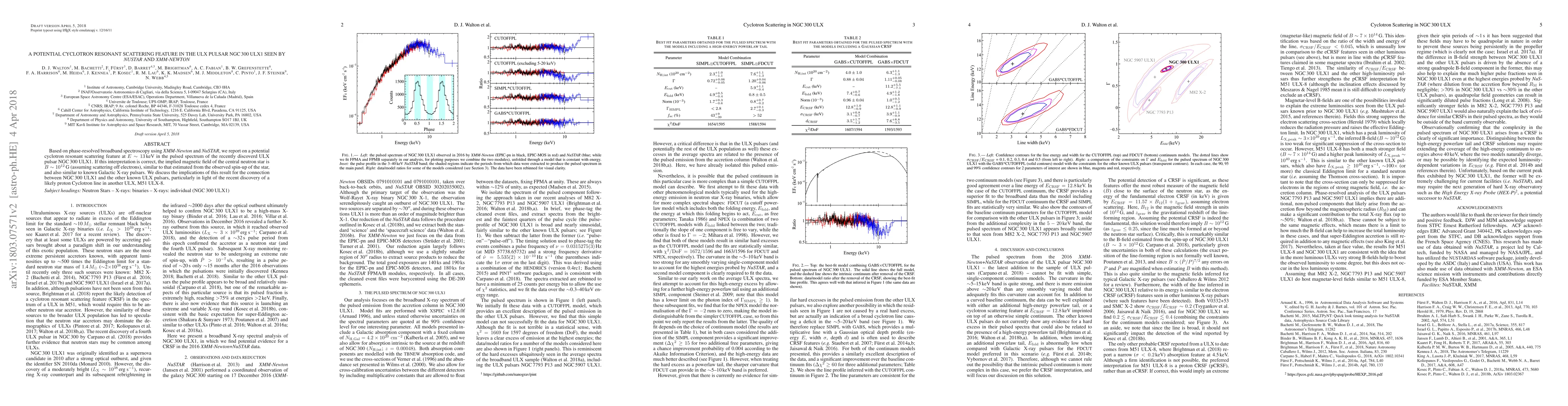 This study identifies a potential cyclotron resonant scattering feature at approximately 13 keV in the pulsed spectrum of NGC 300 ULX1, suggesting a magnetic field of around $10^{12}$ G. This finding aligns with the magnetic field inferred from the pulsar's spin-up and supports the classification of NGC 300 ULX1 as a member of the ULX pulsar group.