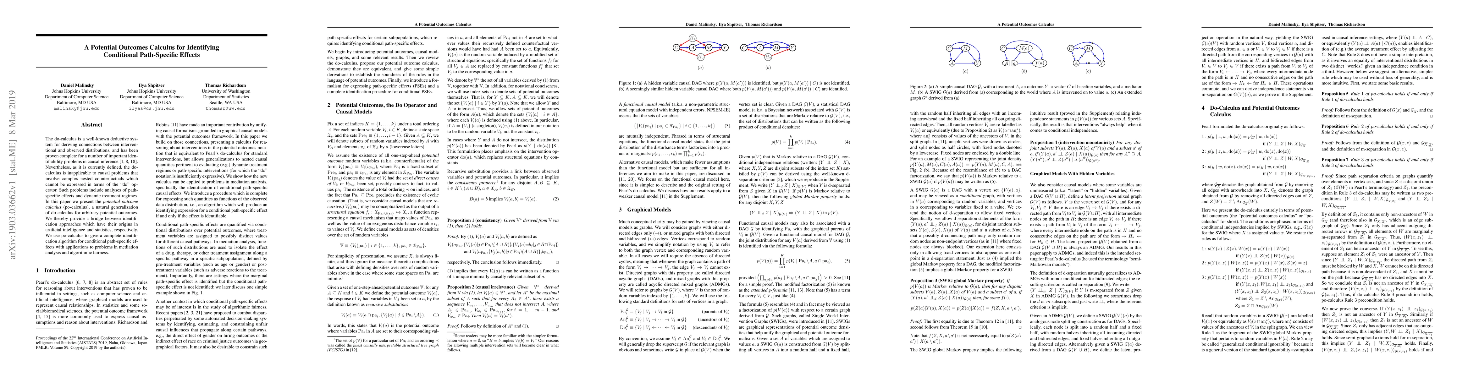The do-calculus is a well-known deductive system for deriving connections between interventional and observed distributions, and has been proven complete for a number of important identifiability problems in causal inference. Nevertheless, as it is currently defined, the do-calculus is inapplicable to causal problems that involve complex nested counterfactuals which cannot be expressed in terms of the "do" operator. Such problems include analyses of path-specific effects and dynamic treatment regimes. In this paper we present the potential outcome calculus (po-calculus), a natural generalization of do-calculus for arbitrary potential outcomes. We thereby provide a bridge between identification approaches which have their origins in artificial intelligence and statistics, respectively. We use po-calculus to give a complete identification algorithm for conditional path-specific effects with applications to problems in mediation analysis and algorithmic fairness.