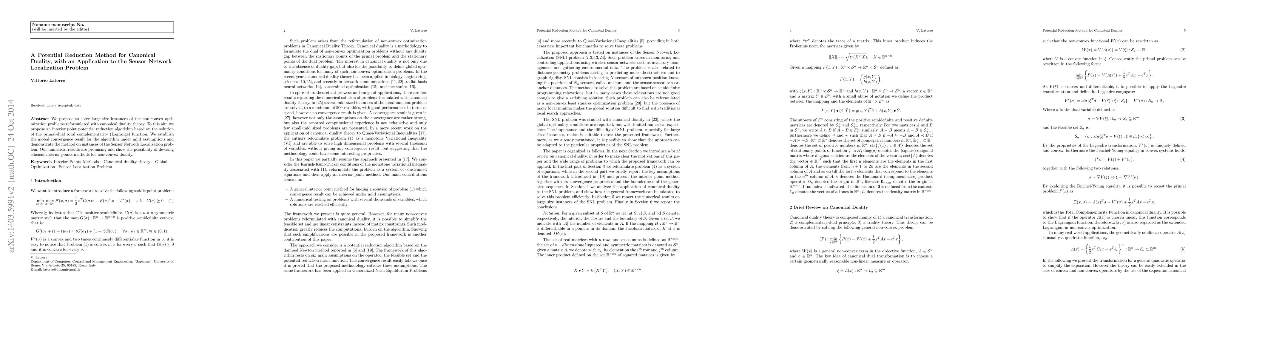 This paper proposes an interior point potential reduction algorithm for solving large non-convex optimization problems using canonical duality theory, demonstrating global convergence under mild assumptions. The method is applied to the Sensor Network Localization problem, showing promising numerical results.