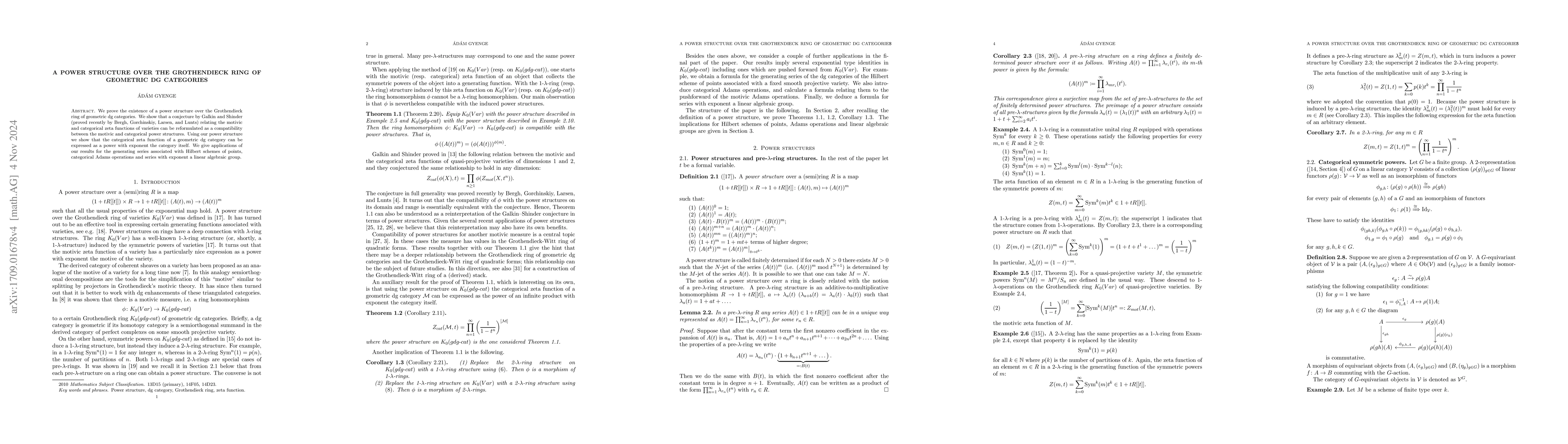 This paper establishes a power structure over the Grothendieck ring of geometric dg categories, reformulating a conjecture about motivic and categorical zeta functions as a compatibility between motivic and categorical power structures. The authors demonstrate that the categorical zeta function can be expressed as a power with the category as the exponent, and discuss applications including generating series for Hilbert schemes and categorical Adams operations.