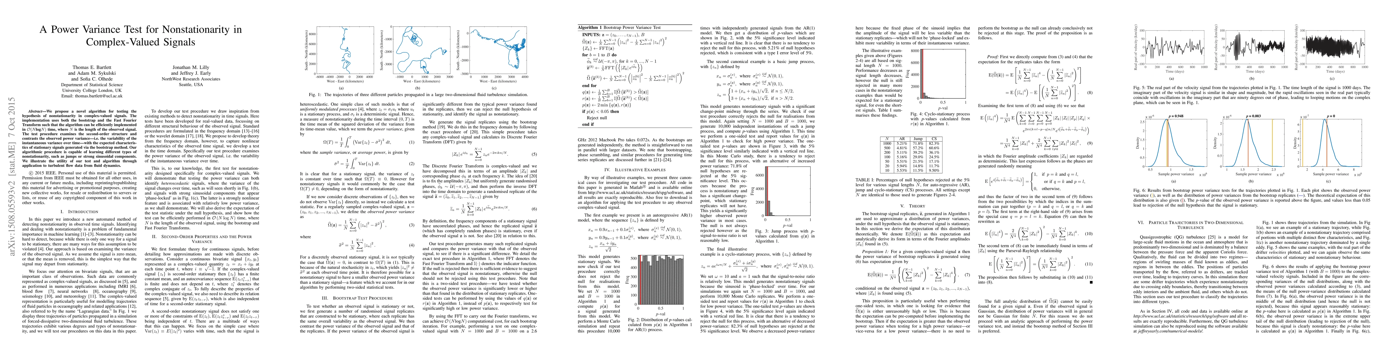 A new algorithm tests for nonstationarity in complex-valued signals, identifying jumps and strong sinusoidal components, and can analyze data in O(NlogN) time.