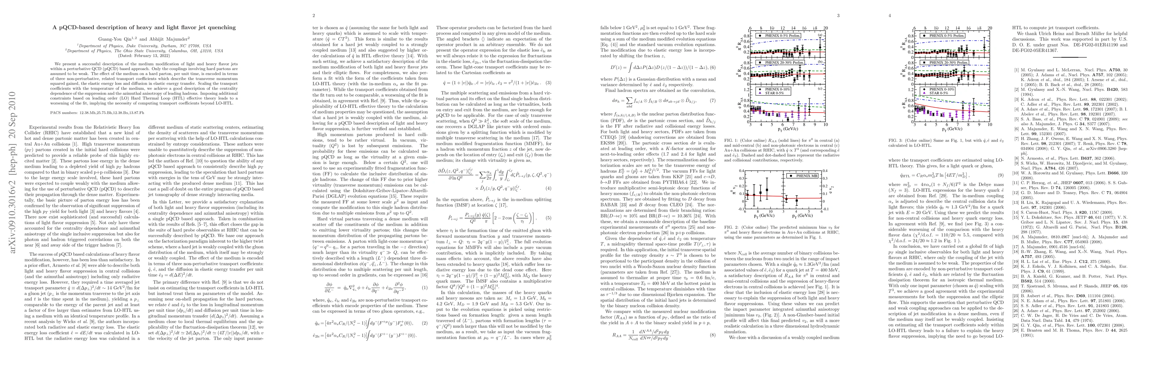 We present a successful description of the medium modification of light and heavy flavor jets within a perturbative QCD (pQCD) based approach. Only the couplings involving hard partons are assumed to be weak. The effect of the medium on a hard parton, per unit time, is encoded in terms of three non-perturbative, related transport coefficients which describe the transverse momentum squared gained, the elastic energy loss and diffusion in elastic energy transfer. A fit of the centrality dependence of the suppression and the azimuthal anisotropy of leading hadrons tends to favor somewhat larger transport coefficients for heavy quarks. Imposing additional constraints based on leading order (LO) Hard Thermal Loop (HTL) effective theory, leads to a worsening of the fit.
