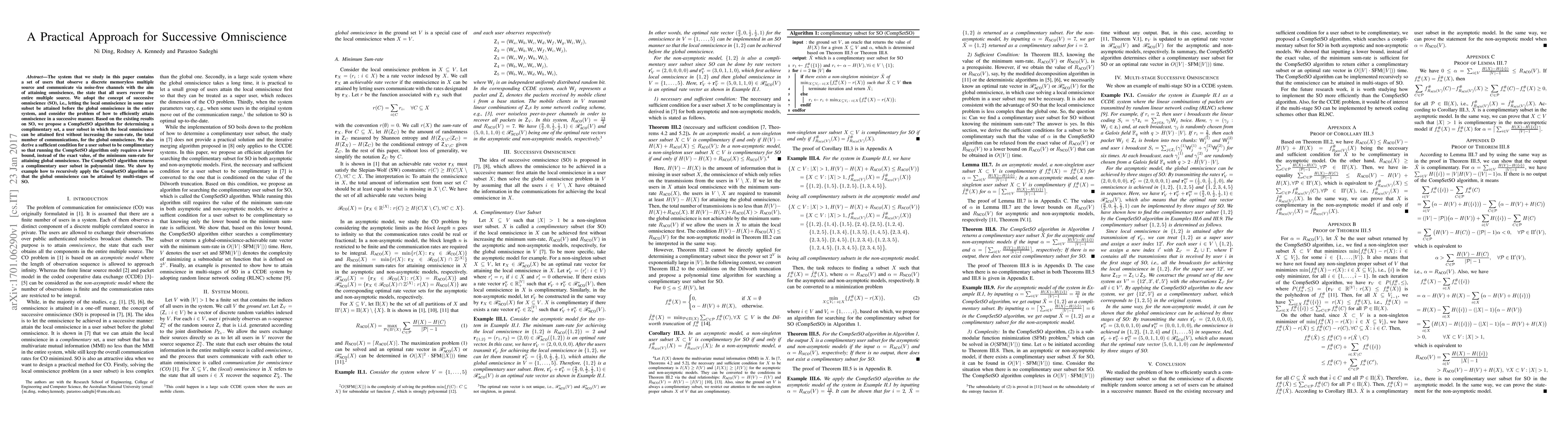 The system that we study in this paper contains a set of users that observe a discrete memoryless multiple source and communicate via noise-free channels with the aim of attaining omniscience, the state that all users recover the entire multiple source. We adopt the concept of successive omniscience (SO), i.e., letting the local omniscience in some user subset be attained before the global omniscience in the entire system, and consider the problem of how to efficiently attain omniscience in a successive manner. Based on the existing results on SO, we propose a CompSetSO algorithm for determining a complimentary set, a user subset in which the local omniscience can be attained first without increasing the sum-rate, the total number of communications, for the global omniscience. We also derive a sufficient condition for a user subset to be complimentary so that running the CompSetSO algorithm only requires a lower bound, instead of the exact value, of the minimum sum-rate for attaining global omniscience. The CompSetSO algorithm returns a complimentary user subset in polynomial time. We show by example how to recursively apply the CompSetSO algorithm so that the global omniscience can be attained by multi-stages of SO.