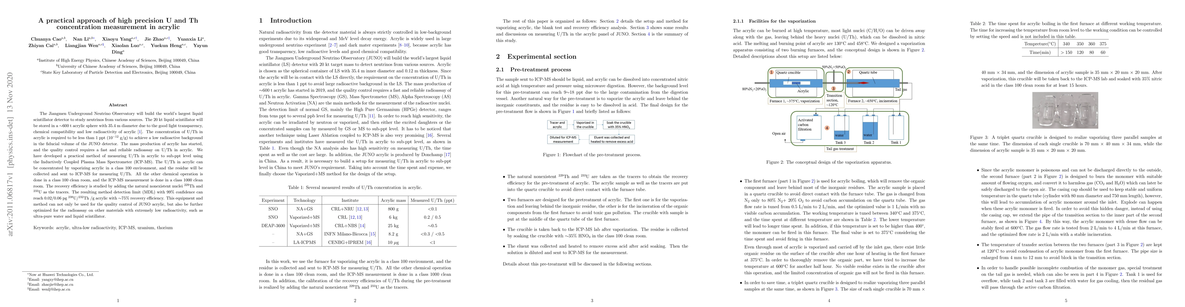 A method for accurately measuring U/Th in acrylic to sub-ppt levels has been developed using ICP-MS, allowing for efficient quality control of the JUNO detector's liquid scintillator.