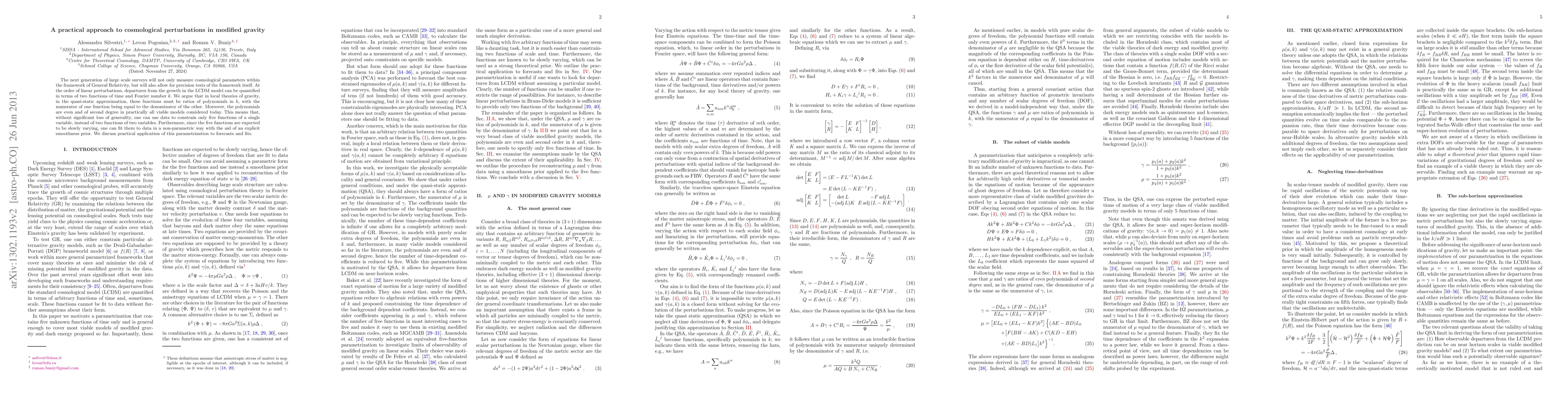 The next generation of large scale surveys will not only measure cosmological parameters within the framework of General Relativity, but will also allow for precision tests of the framework itself. At the order of linear perturbations, departures from the growth in the LCDM model can be quantified in terms of two functions of time and Fourier number k. We argue that in local theories of gravity, in the quasi-static approximation, these functions must be ratios of polynomials in k, with the numerator of one function being equal to the denominator of the other. Moreover, the polynomials are even and of second degree in practically all viable models considered today. This means that, without significant loss of generality, one can use data to constraint only five functions of a single variable, instead of two functions of two variables. Furthermore, since the five functions are expected to be slowly varying, one can fit them to data in a non-parametric way with the aid of an explicit smoothness prior. We discuss practical application of this parametrization to forecasts and fits.