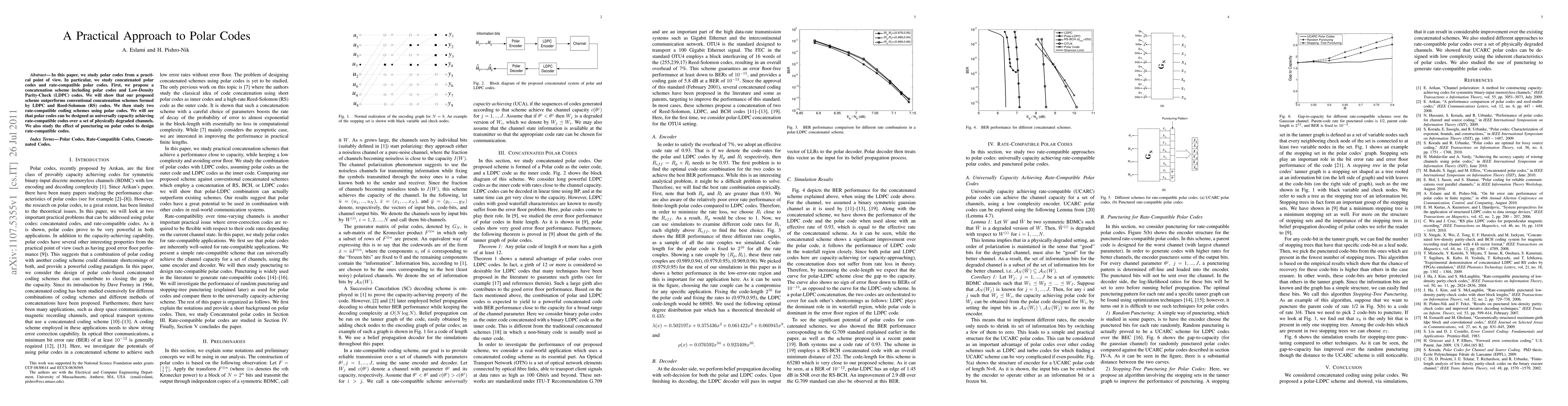 In this paper, we study polar codes from a practical point of view. In particular, we study concatenated polar codes and rate-compatible polar codes. First, we propose a concatenation scheme including polar codes and Low-Density Parity-Check (LDPC) codes. We will show that our proposed scheme outperforms conventional concatenation schemes formed by LDPC and Reed-Solomon (RS) codes. We then study two rate-compatible coding schemes using polar codes. We will see that polar codes can be designed as universally capacity achieving rate-compatible codes over a set of physically degraded channels. We also study the effect of puncturing on polar codes to design rate-compatible codes.