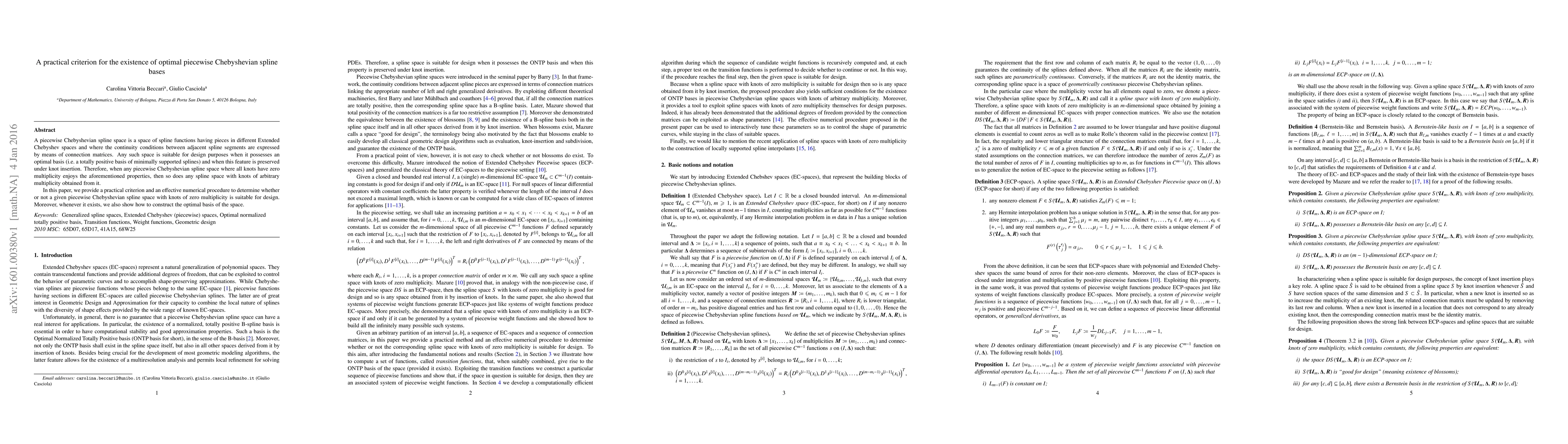 This paper presents a practical criterion and numerical procedure to determine the existence of optimal piecewise Chebyshevian spline bases, ensuring suitability for design purposes. It also outlines a method for constructing these bases when they exist.