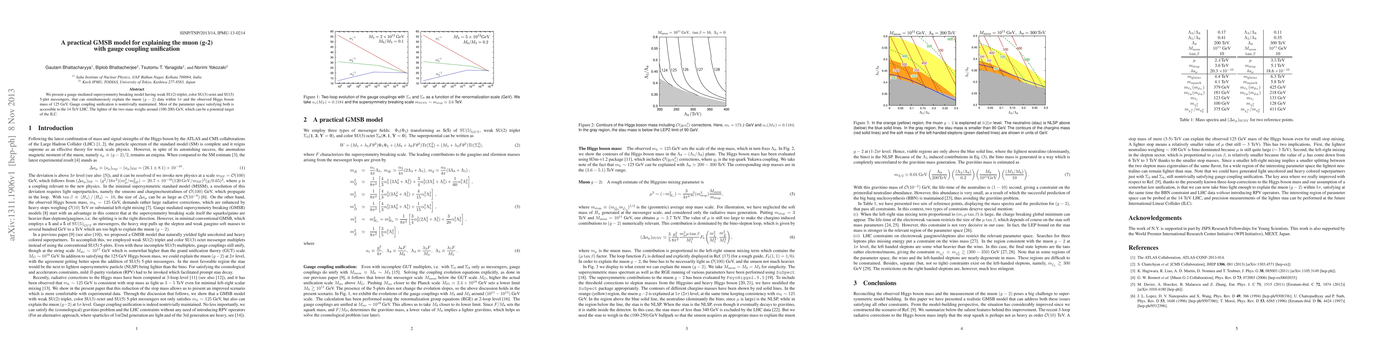 We present a gauge mediated supersymmetry breaking model having weak SU(2) triplet, color SU(3) octet and SU(5) 5-plet messengers, that can simultaneously explain the muon $(g-2)$ data within 1$\sigma$ and the observed Higgs boson mass of 125 GeV. Gauge coupling unification is nontrivially maintained. Most of the parameter space satisfying both is accessible to the 14 TeV LHC. The lighter of the two staus weighs around (100-200) GeV, which can be a potential target of the ILC.