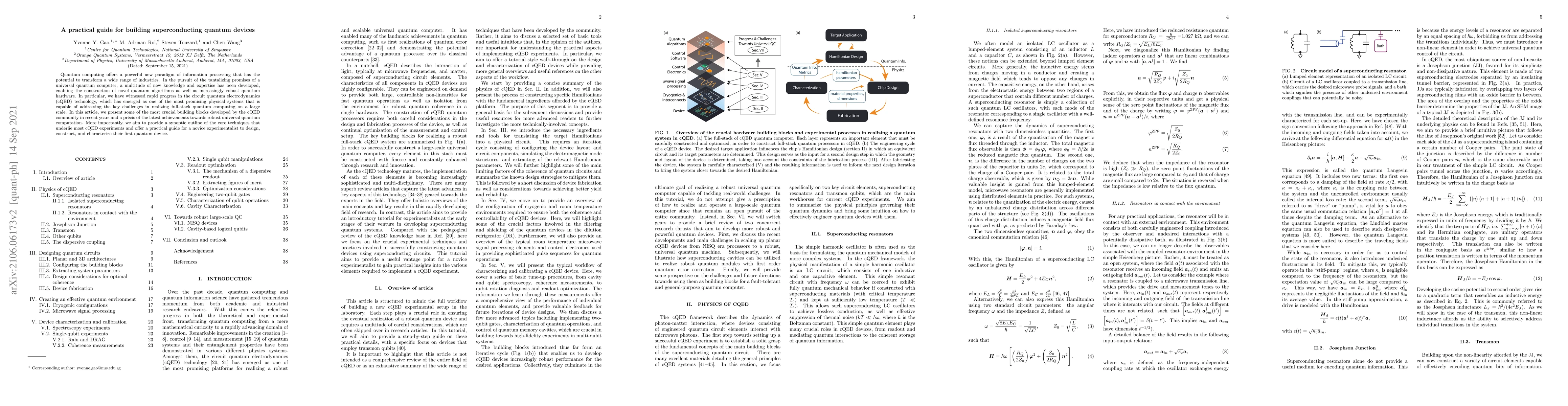 Quantum computing offers a powerful new paradigm of information processing that has the potential to transform a wide range of industries. In the pursuit of the tantalizing promises of a universal quantum computer, a multitude of new knowledge and expertise has been developed, enabling the construction of novel quantum algorithms as well as increasingly robust quantum hardware. In particular, we have witnessed rapid progress in the circuit quantum electrodynamics (cQED) technology, which has emerged as one of the most promising physical systems that is capable of addressing the key challenges in realizing full-stack quantum computing on a large scale. In this article, we present some of the most crucial building blocks developed by the cQED community in recent years and a pr\'{e}cis of the latest achievements towards robust universal quantum computation. More importantly, we aim to provide a synoptic outline of the core techniques that underlie most cQED experiments and offer a practical guide for a novice experimentalist to design, construct, and characterize their first quantum device
