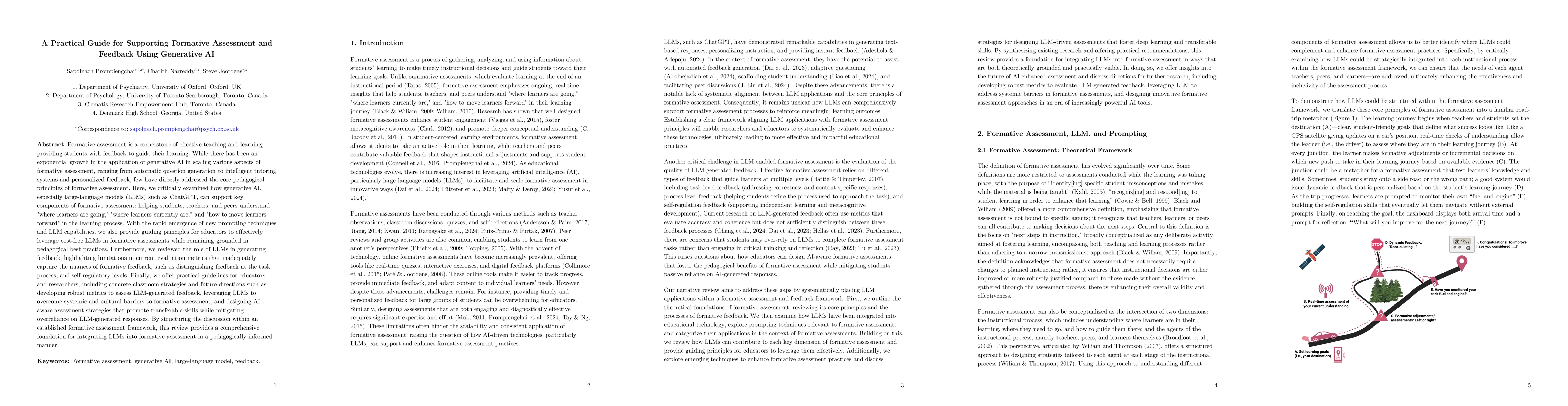 The paper provides a critical examination and practical guide for integrating large-language models (LLMs) into formative assessment, focusing on their use in automatic question generation, personalized feedback, and overcoming systemic barriers.