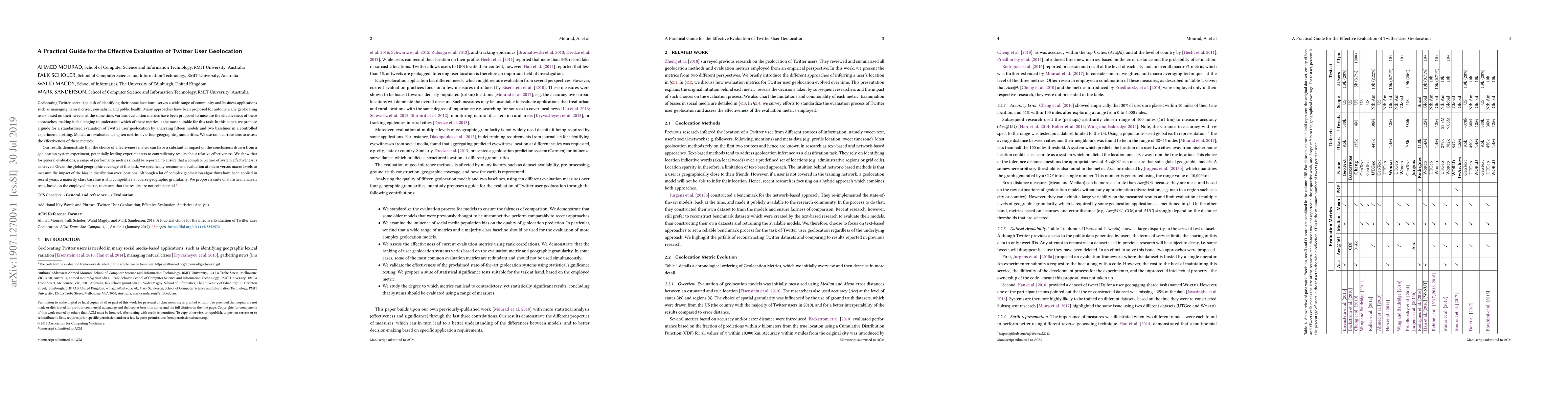 This paper proposes a standardized evaluation guide for Twitter user geolocation, analyzing fifteen models and two baselines using ten metrics across four geographic granularities. It highlights the importance of choosing appropriate evaluation metrics to avoid contradictory conclusions and recommends reporting a range of metrics to provide a comprehensive assessment.