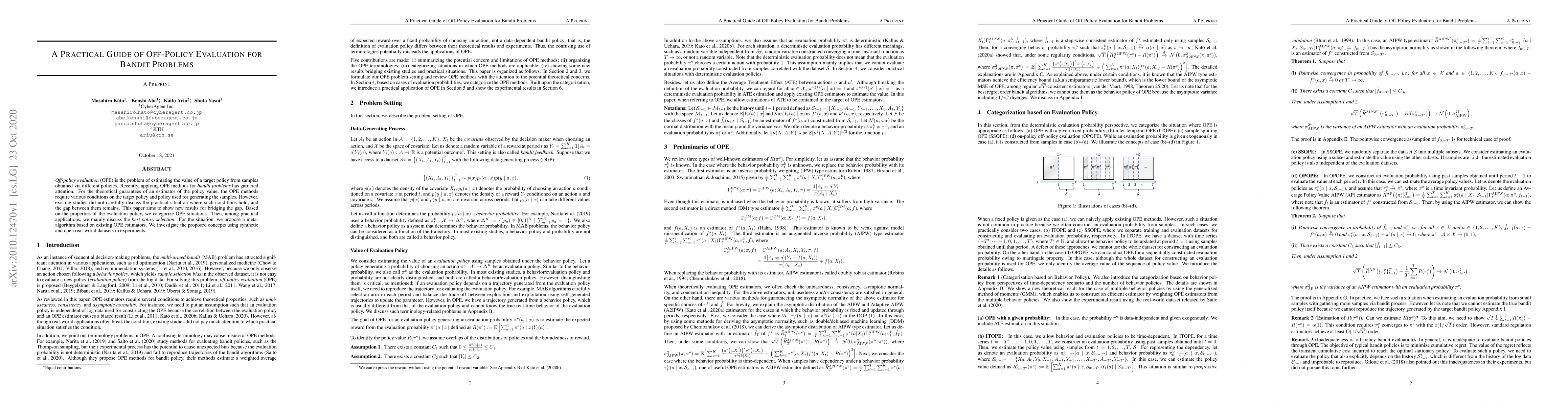 This paper bridges the gap between theoretical guarantees of off-policy evaluation for bandit problems and practical situations, proposing a meta-algorithm to select the best policy in real-world applications.