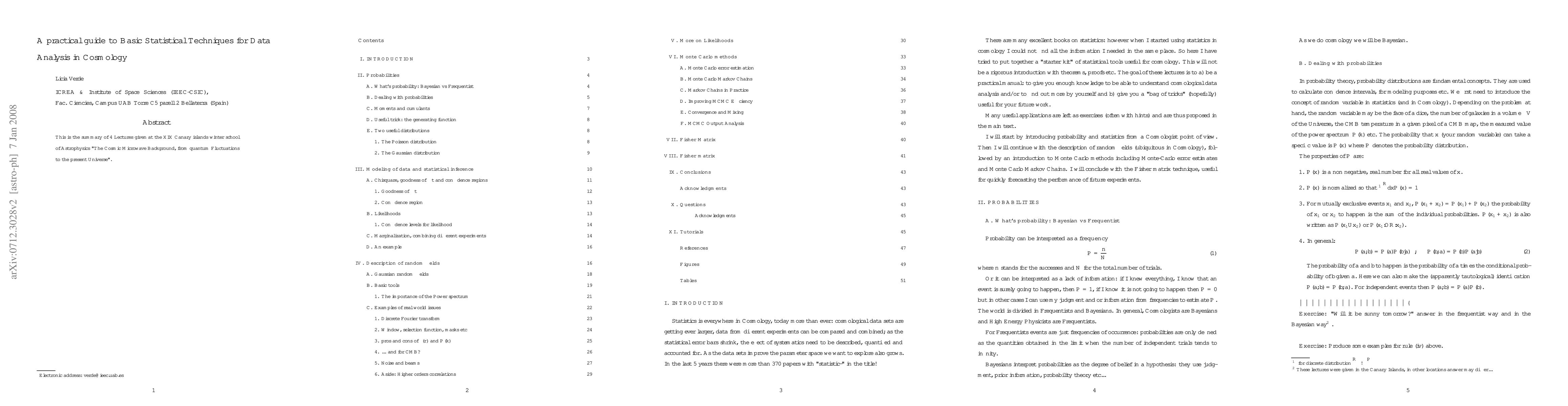 This paper provides a practical guide to basic statistical techniques for analyzing cosmological data, targeting master/beginning PhD students. It covers key methods for understanding the cosmic microwave background and its fluctuations in the universe.
