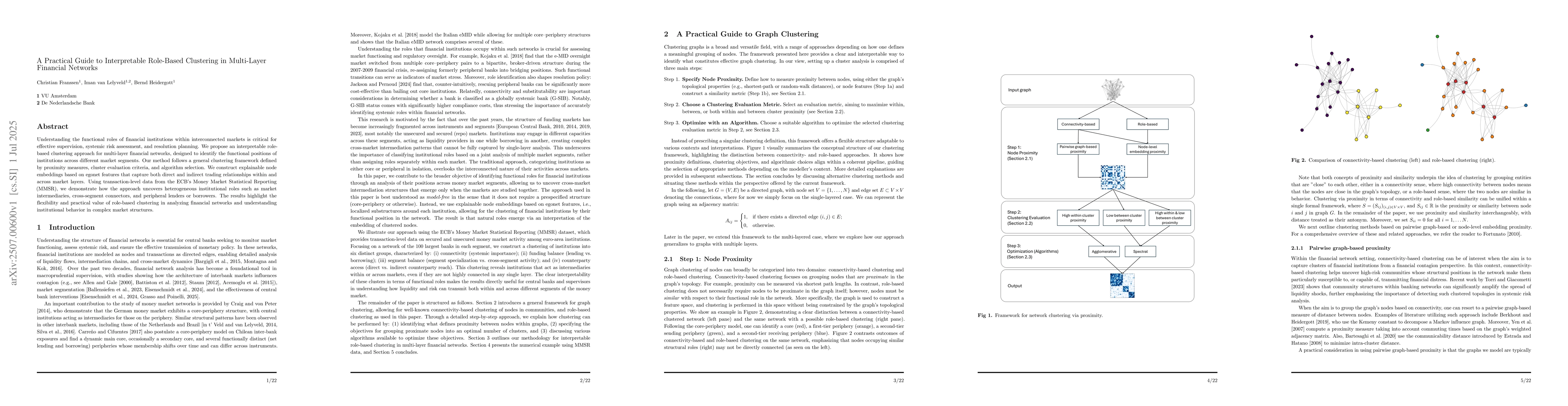 Understanding the functional roles of financial institutions within interconnected markets is critical for effective supervision, systemic risk assessment, and resolution planning. We propose an interpretable role-based clustering approach for multi-layer financial networks, designed to identify the functional positions of institutions across different market segments. Our method follows a general clustering framework defined by proximity measures, cluster evaluation criteria, and algorithm selection. We construct explainable node embeddings based on egonet features that capture both direct and indirect trading relationships within and across market layers. Using transaction-level data from the ECB's Money Market Statistical Reporting (MMSR), we demonstrate how the approach uncovers heterogeneous institutional roles such as market intermediaries, cross-segment connectors, and peripheral lenders or borrowers. The results highlight the flexibility and practical value of role-based clustering in analyzing financial networks and understanding institutional behavior in complex market structures.
