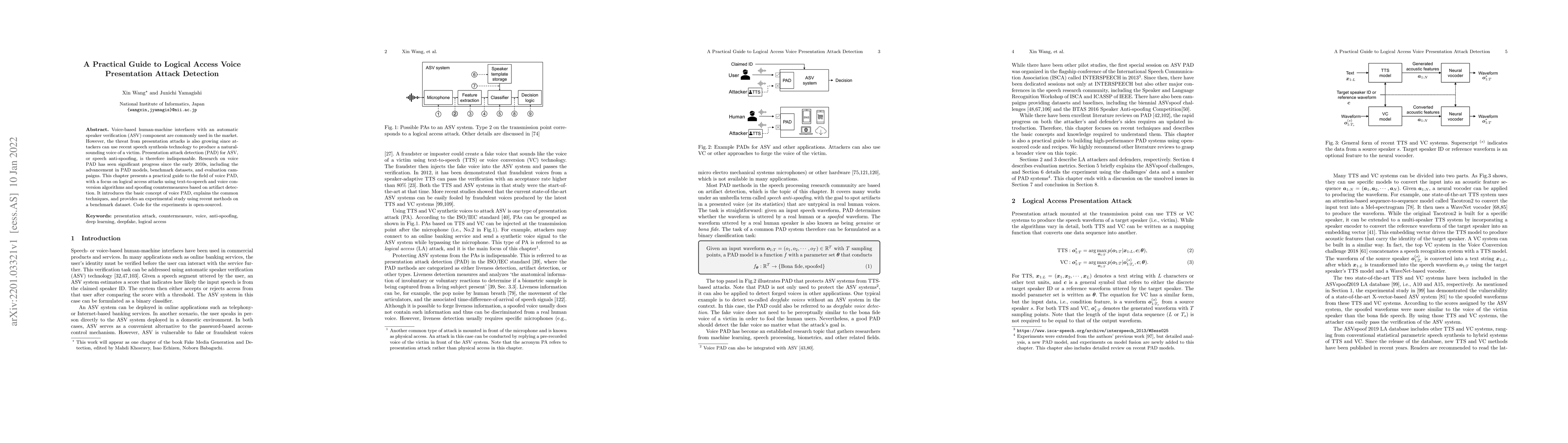 Voice-based human-machine interfaces with an automatic speaker verification (ASV) component are commonly used in the market. However, the threat from presentation attacks is also growing since attackers can use recent speech synthesis technology to produce a natural-sounding voice of a victim. Presentation attack detection (PAD) for ASV, or speech anti-spoofing, is therefore indispensable. Research on voice PAD has seen significant progress since the early 2010s, including the advancement in PAD models, benchmark datasets, and evaluation campaigns. This chapter presents a practical guide to the field of voice PAD, with a focus on logical access attacks using text-to-speech and voice conversion algorithms and spoofing countermeasures based on artifact detection. It introduces the basic concept of voice PAD, explains the common techniques, and provides an experimental study using recent methods on a benchmark dataset. Code for the experiments is open-sourced.