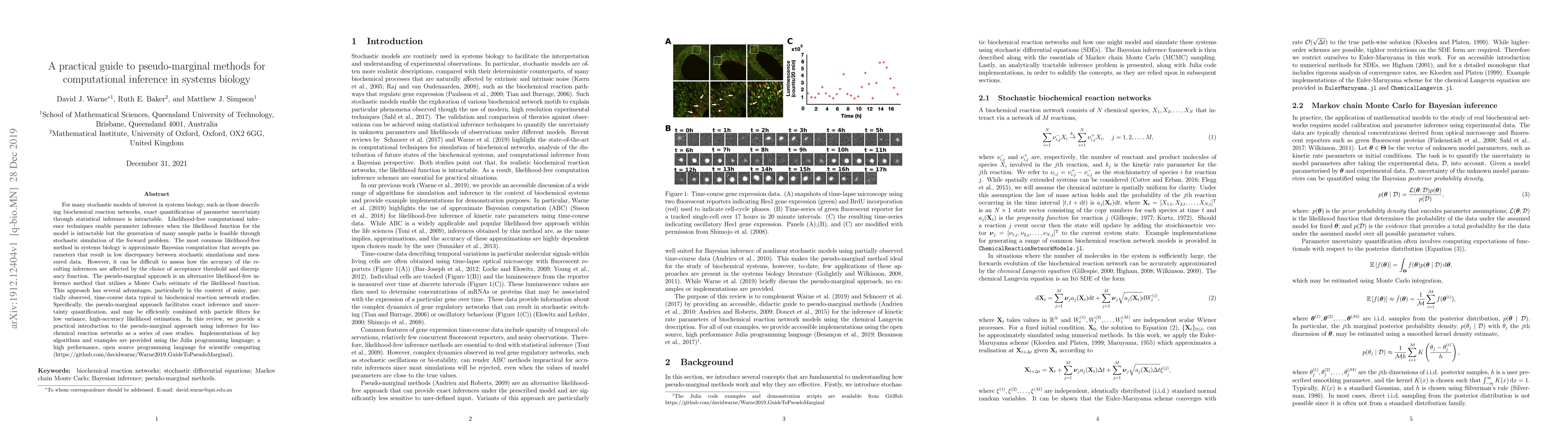 This paper introduces the pseudo-marginal approach for computational inference in systems biology, particularly for biochemical reaction networks. It highlights the advantages of this method over approximate Bayesian computation, including exact inference and uncertainty quantification, and provides practical examples using Julia for implementation.