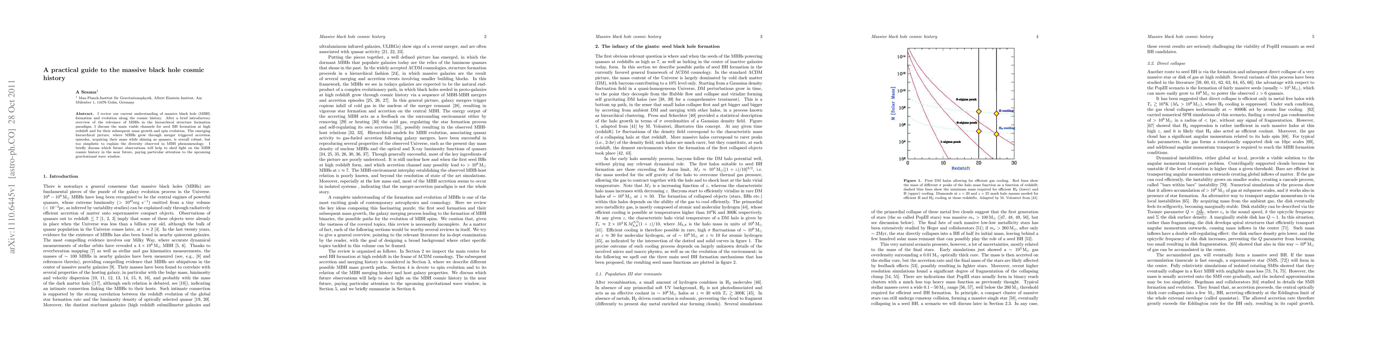 This paper reviews current understanding of massive black hole (MBH) formation and evolution, highlighting the main channels for seed BH formation and their growth through mergers and accretion, while noting the complexity beyond the emerging hierarchical picture. Future observations, especially gravitational waves, are expected to further illuminate MBH cosmic history.
