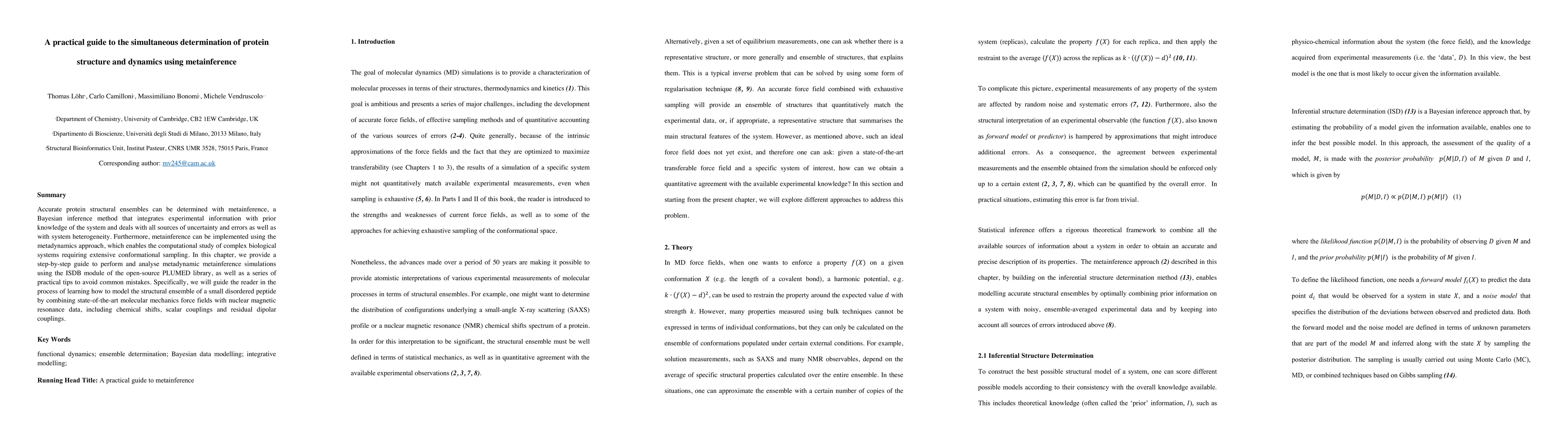 This paper provides a practical guide to using metainference to determine protein structure and dynamics, including step-by-step instructions and tips for performing simulations using the PLUMED library.