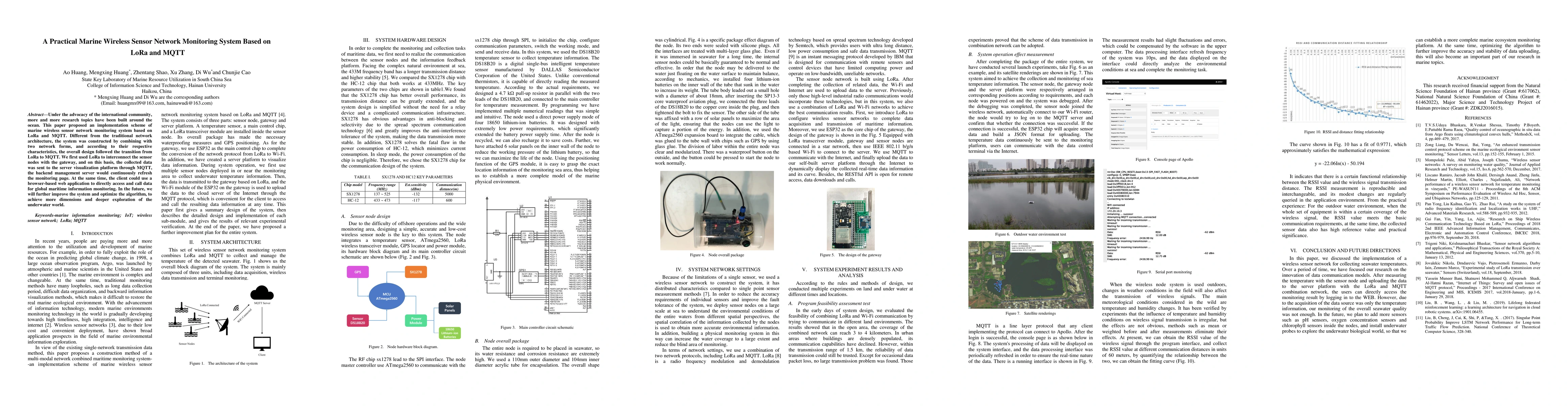 This paper proposes a marine wireless sensor network monitoring system using LoRa and MQTT, combining these technologies for efficient data transmission from sensor nodes to a server visualization platform. The system aims to enhance global maritime information monitoring and plans for future optimizations.