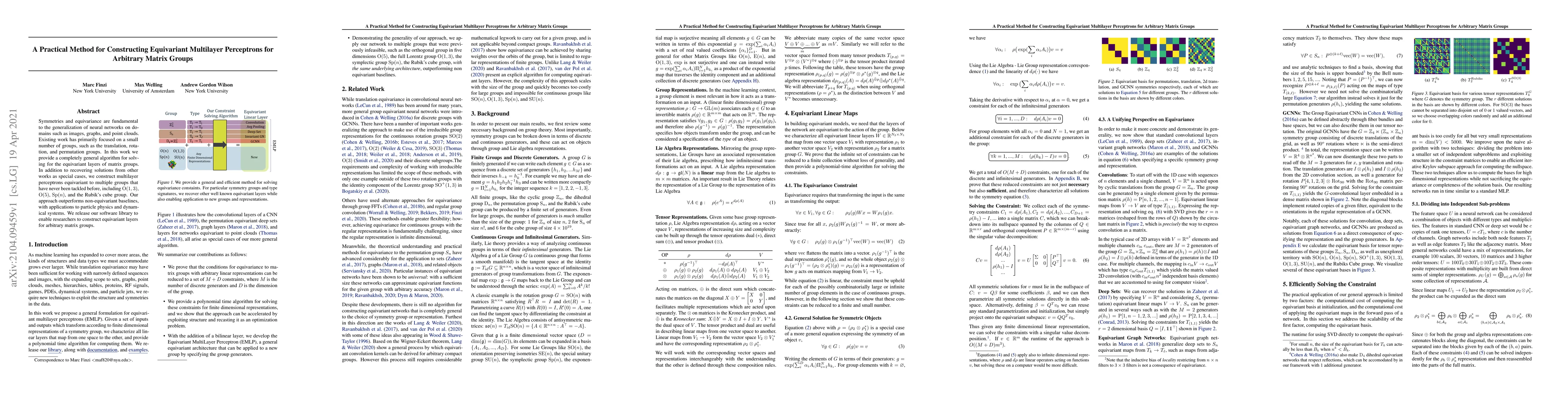 This paper presents a general algorithm for constructing equivariant multilayer perceptrons for arbitrary matrix groups, extending beyond traditional groups like translations and rotations to include complex groups such as $\mathrm{O}(1,3)$ and the Rubik's cube group. The method outperforms non-equivariant baselines and has applications in particle physics and dynamical systems.