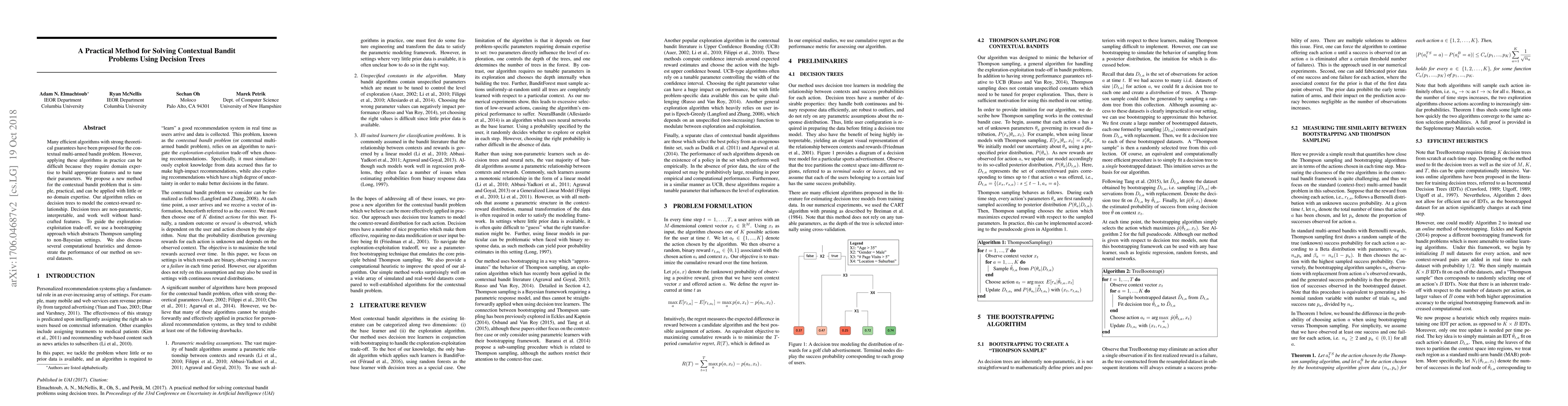 A new method for solving contextual bandit problems using decision trees is proposed, offering a simple and practical solution that can be applied with little or no domain expertise.