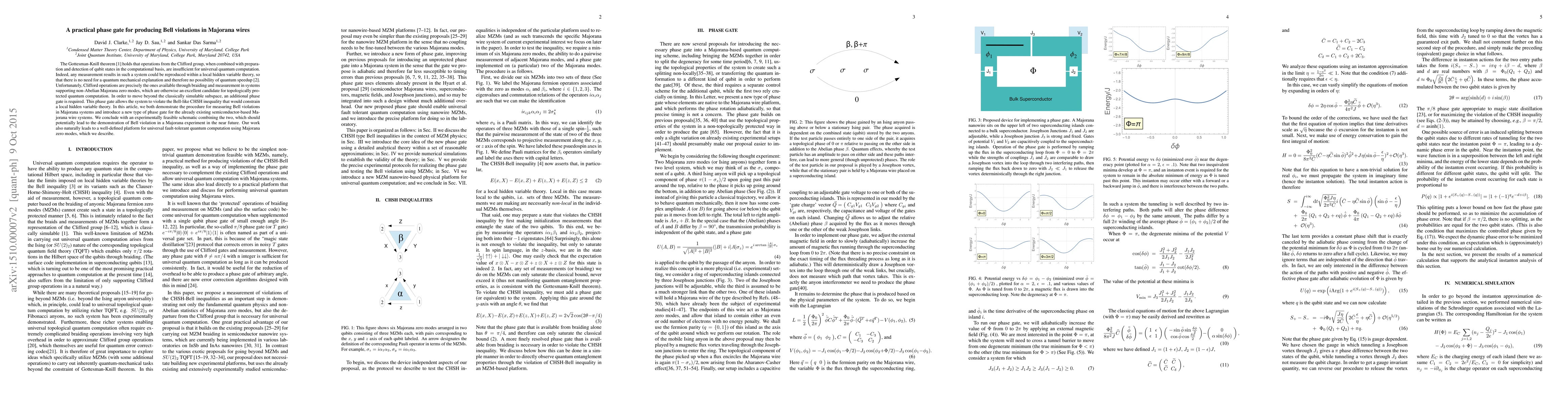 The Gottesman-Knill theorem holds that operations from the Clifford group, when combined with preparation and detection of qubit states in the computational basis, are insufficient for universal quantum computation. Indeed, any measurement results in such a system could be reproduced within a local hidden variable theory, so that there is no need for a quantum mechanical explanation and therefore no possibility of quantum speedup. Unfortunately, Clifford operations are precisely the ones available through braiding and measurement in systems supporting non-Abelian Majorana zero modes, which are otherwise an excellent candidate for topologically protected quantum computation. In order to move beyond the classically simulable subspace, an additional phase gate is required. This phase gate allows the system to violate the Bell-like CHSH inequality that would constrain a local hidden variable theory. In this article, we both demonstrate the procedure for measuring Bell violations in Majorana systems and introduce a new type of phase gate for the already existing semiconductor-based Majorana wire systems. We conclude with an experimentally feasible schematic combining the two, which should potentially lead to the demonstration of Bell violation in a Majorana experiment in the near future. Our work also naturally leads to a well-defined platform for universal fault-tolerant quantum computation using Majorana zero modes, which we describe.
