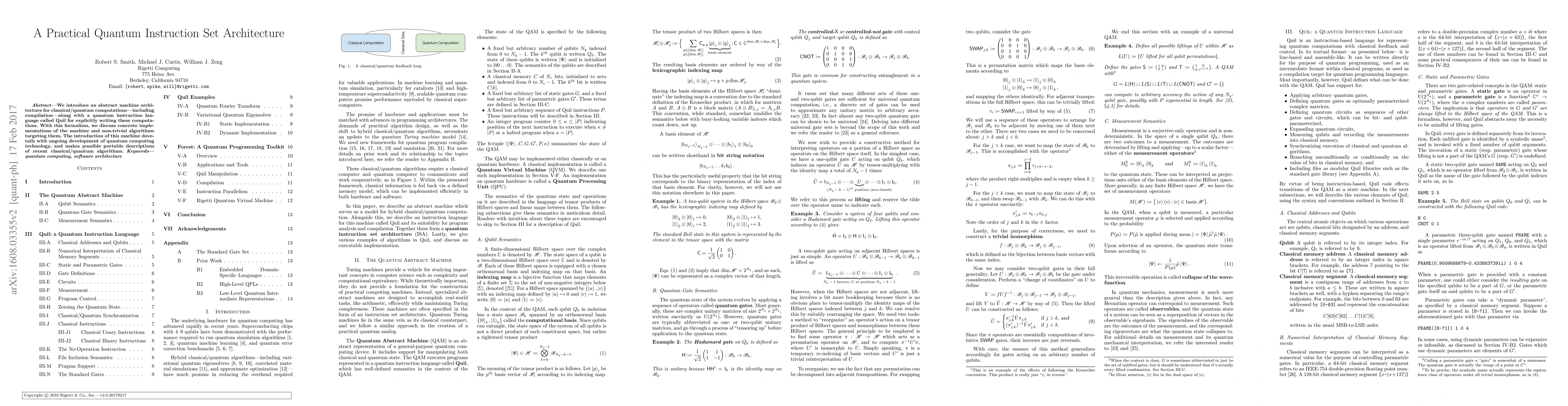 This paper presents a practical quantum instruction set architecture (QISA) and a quantum instruction language called Quil for compiling and executing classical/quantum computations. It outlines concrete implementations and non-trivial algorithms, aligning with the advancement of quantum computing technology.