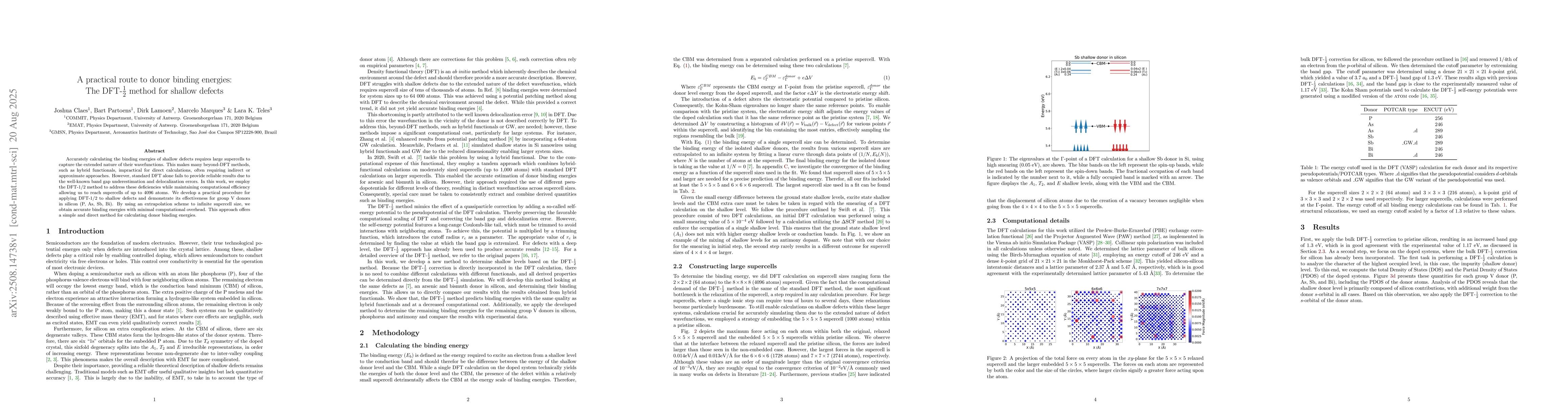 The research employs the DFT-1/2 method to calculate donor binding energies in shallow defects, addressing deficiencies of standard DFT while maintaining computational efficiency by using large supercells up to 4096 atoms.