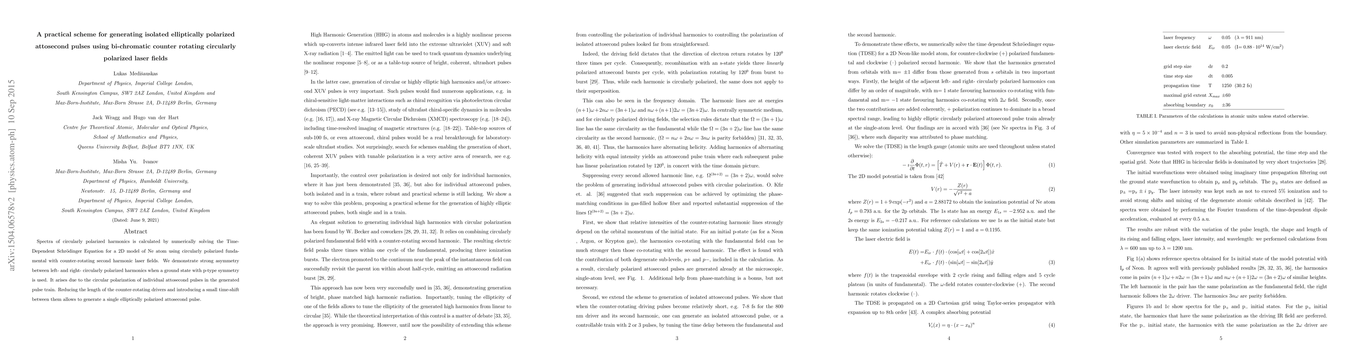 This study presents a method for generating isolated elliptically polarized attosecond pulses using bi-chromatic counter-rotating circularly polarized laser fields. It leverages numerical solutions of the Time-Dependent Schrödinger Equation for a Ne atom model to achieve strong asymmetry in circularly polarized harmonics, resulting in a single elliptically polarized attosecond pulse.