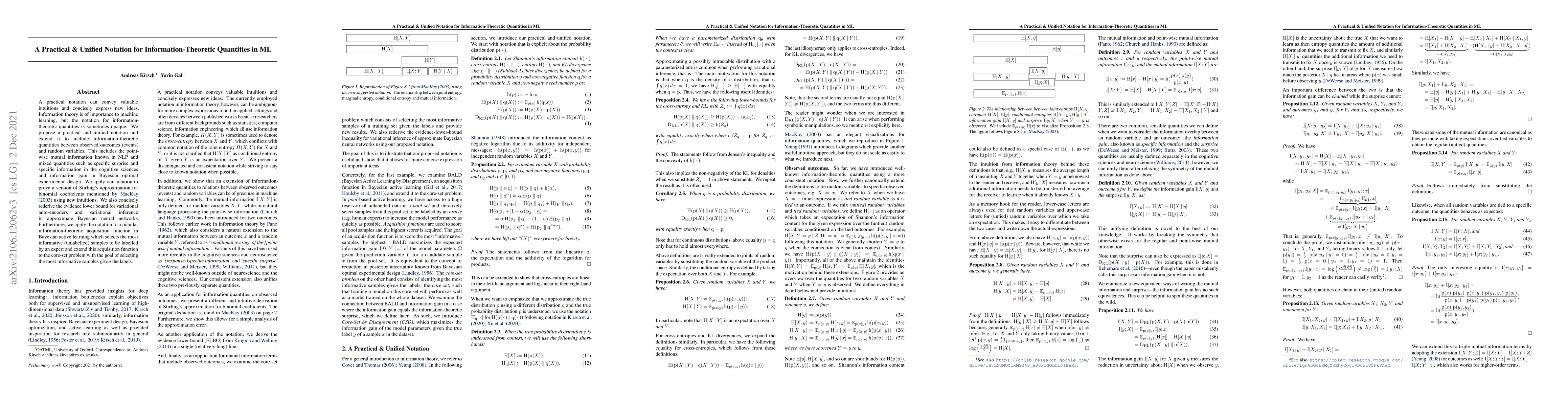 This paper proposes a unified notation for information-theoretic quantities in machine learning to enhance clarity and intuition. It extends the notation to cover various concepts like mutual information and surprise, and applies it to derive new results, including a version of Stirling's approximation and the evidence lower bound for variational models.