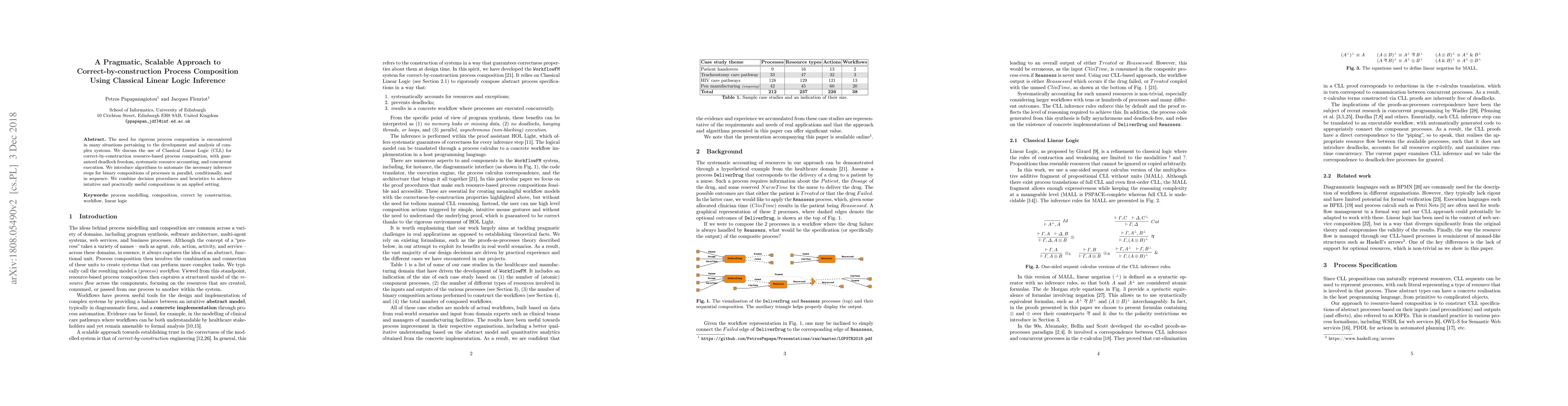 The need for rigorous process composition is encountered in many situations pertaining to the development and analysis of complex systems. We discuss the use of Classical Linear Logic (CLL) for correct-by-construction resource-based process composition, with guaranteed deadlock freedom, systematic resource accounting, and concurrent execution. We introduce algorithms to automate the necessary inference steps for binary compositions of processes in parallel, conditionally, and in sequence. We combine decision procedures and heuristics to achieve intuitive and practically useful compositions in an applied setting.