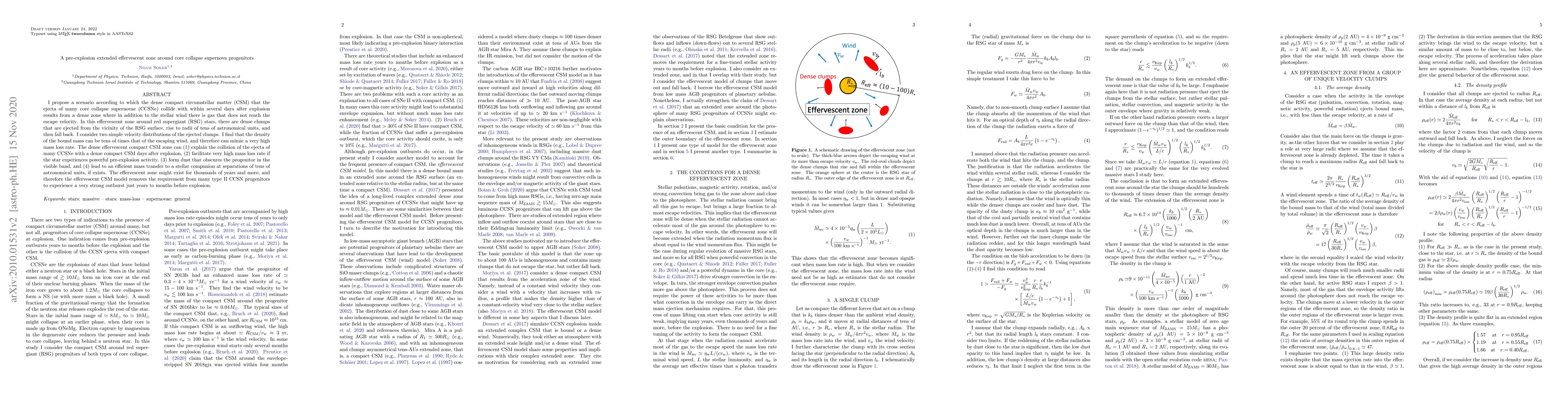 I propose a scenario according to which the dense compact circumstellar matter (CSM) that the ejecta of many core collapse supernovae (CCSNe) collide with within several days after explosion results from a dense zone where in addition to the stellar wind there is gas that does not reach the escape velocity. In this effervescent zone around red supergiant (RSG) stars, there are dense clumps that are ejected from the vicinity of the RSG surface, rise to radii of tens of astronomical units, and then fall back. I consider two simple velocity distributions of the ejected clumps. I find that the density of the bound mass can be tens of times that of the escaping wind, and therefore can mimic a very high mass loss rate. The dense effervescent compact CSM zone can (1) explain the collision of the ejecta of many CCSNe with a dense compact CSM days after explosion, (2) facilitate very high mass loss rate if the star experiences powerful pre-explosion activity, (3) form dust that obscures the progenitor in the visible band, and (4) lead to an efficient mass transfer to a stellar companion at separations of tens of astronomical units, if exists. The effervescent zone might exist for thousands of years and more, and therefore the effervescent CSM model removes the requirement from many type II CCSN progenitors to experience a very strong outburst just years to months before explosion.