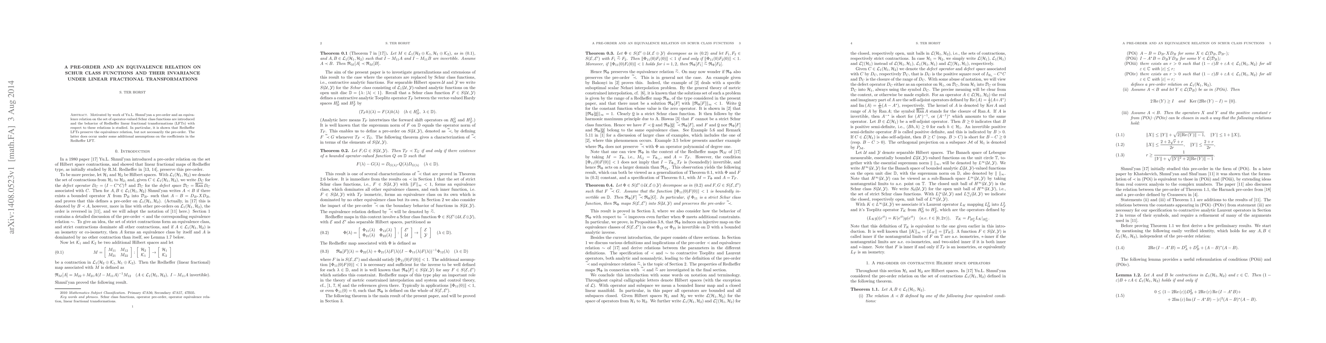 Motivated by work of Yu.L. Shmul'yan a pre-order and an equivalence relation on the set of operator-valued Schur class functions are introduced and the behavior of Redheffer linear fractional transformations (LFTs) with respect to these relations is studied. In particular, it is shown that Redheffer LFTs preserve the equivalence relation, but not necessarily the pre-order. The latter does occur under some additional assumptions on the coefficients in the Redheffer LFT.