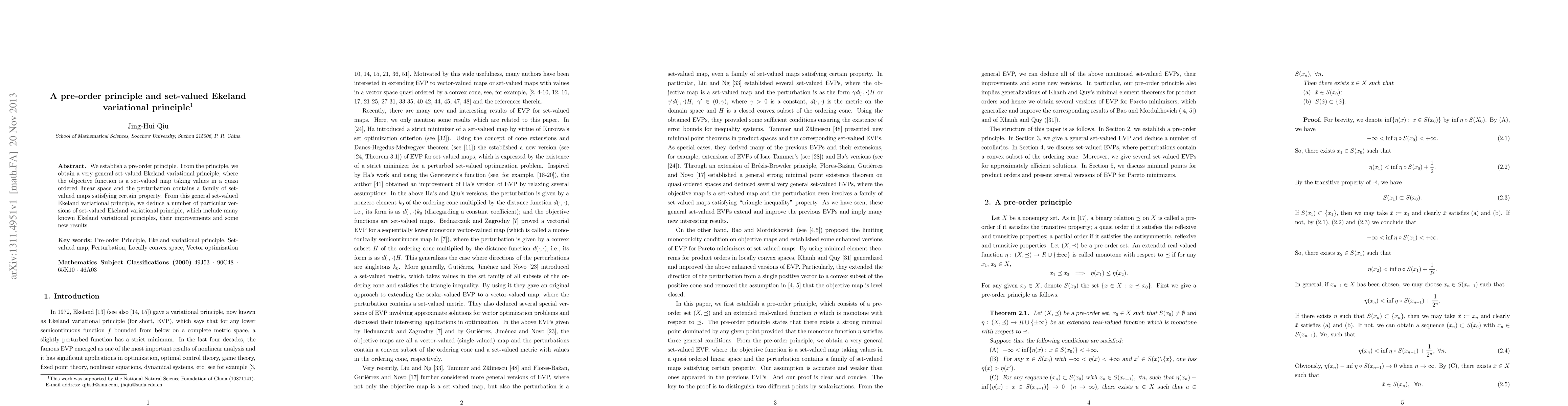 We establish a pre-order principle. From the principle, we obtain a very general set-valued Ekeland variational principle, where the objective function is a set-valued map taking values in a quasi ordered linear space and the perturbation contains a family of set-valued maps satisfying certain property. From this general set-valued Ekeland variational principle, we deduce a number of particular versions of set-valued Ekeland variational principle, which include many known Ekeland variational principles, their improvements and some new results.