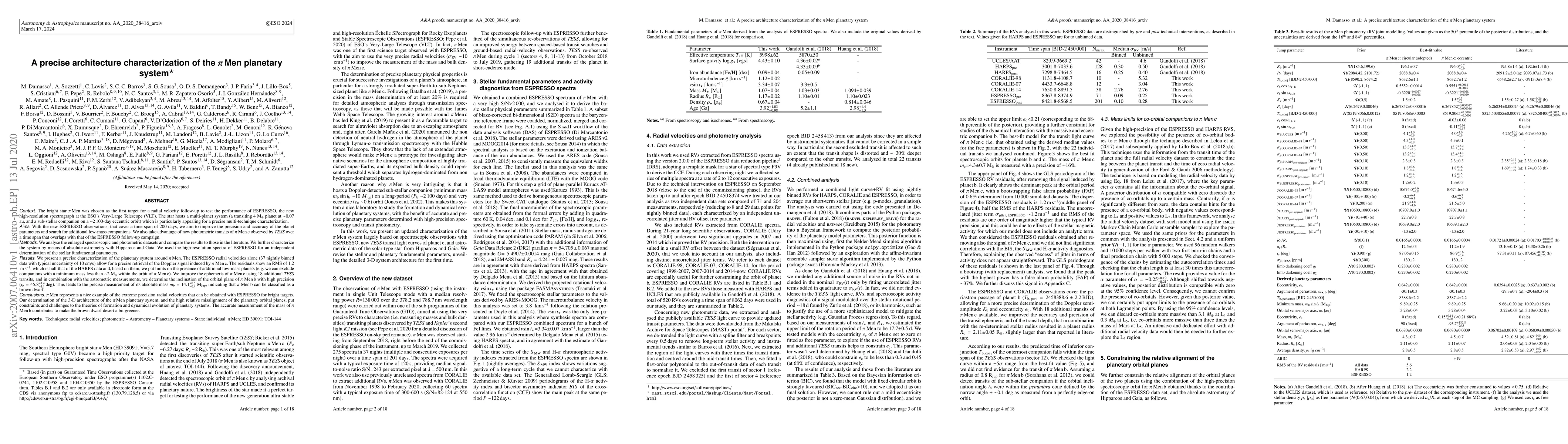 Researchers used ESPRESSO spectrograph to precisely characterize the $eta$ Men planetary system, revealing misaligned orbital planes and precise measurements of planet masses.