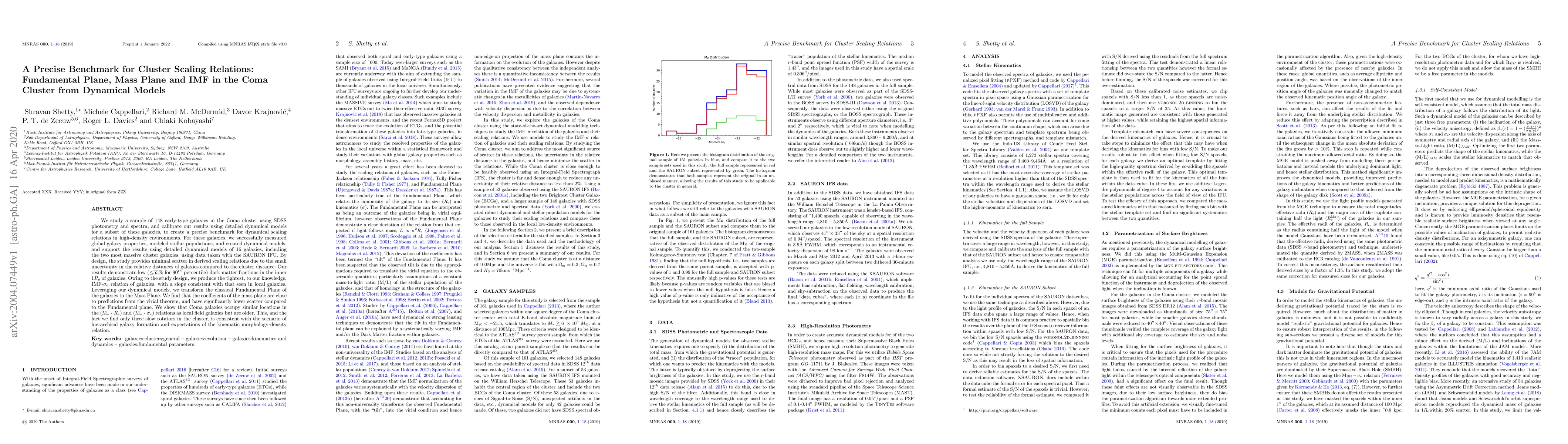 This study calibrates dynamical scaling relations for 148 early-type galaxies in the Coma cluster using detailed dynamical models, revealing low dark matter fractions and tight IMF-σ_e relations. The Mass Plane derived from the models shows lower scatter than the Fundamental Plane, supporting hierarchical galaxy formation.