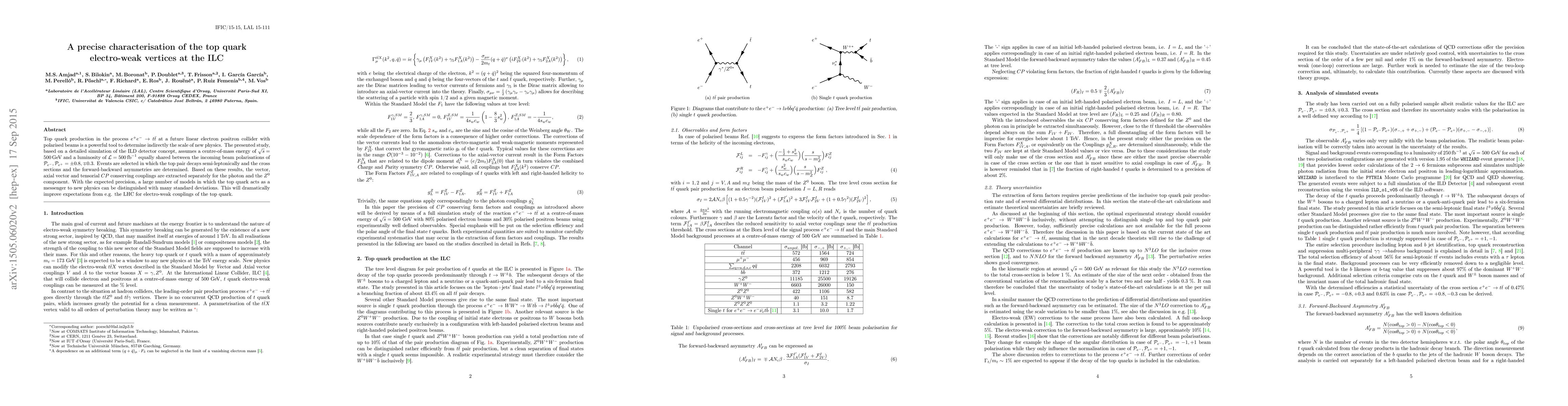 The study investigates top quark electro-weak vertices at a future linear electron positron collider, allowing for the determination of new physics scales with high precision.