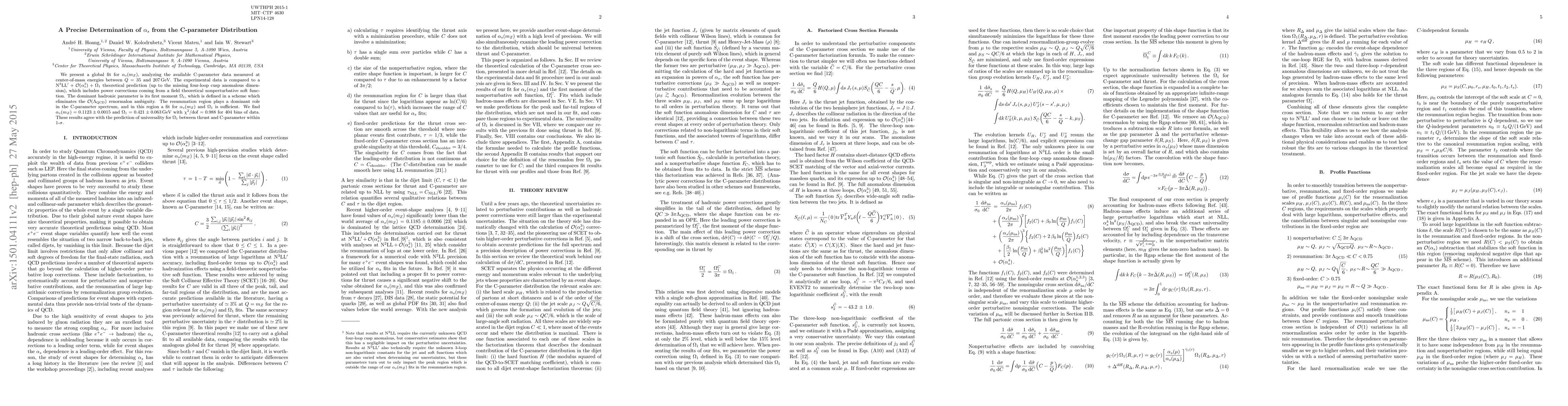 This paper provides a precise determination of the strong coupling constant $\alpha_s(m_Z)$ through a global fit of C-parameter data, finding $\alpha_s(m_Z)=0.1123\pm 0.0015$, and introduces a new scheme to define the hadronic parameter $\Omega_1$ that eliminates renormalon ambiguity. The results align well with universality predictions.