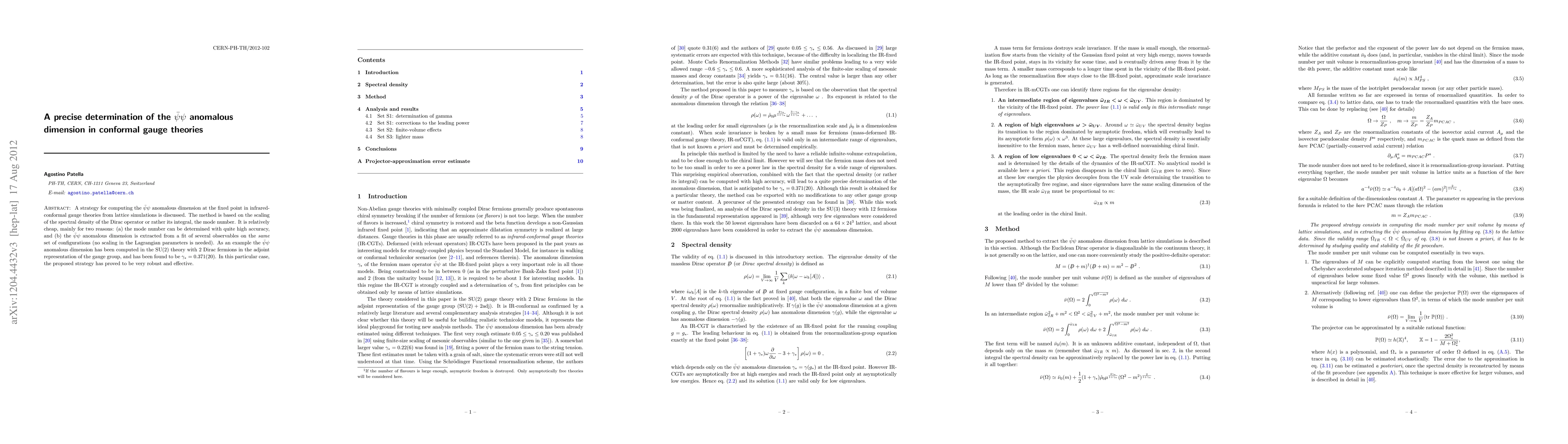 A strategy for computing the psibar-psi anomalous dimension at the fixed point in infrared-conformal gauge theories from lattice simulations is discussed. The method is based on the scaling of the spectral density of the Dirac operator or rather its integral, the mode number. It is relatively cheap, mainly for two reasons: (a) the mode number can be determined with quite high accuracy, (b) the psibar-psi anomalous dimension is extracted from a fit of several observables on the same set of configurations (no scaling in the Lagrangian parameters is needed). As an example the psibar-psi anomalous dimension has been computed in the SU(2) theory with 2 Dirac fermions in the adjoint representation of the gauge group, and has been found to be 0.371(20). In this particular case, the proposed strategy has proved to be very robust and effective.