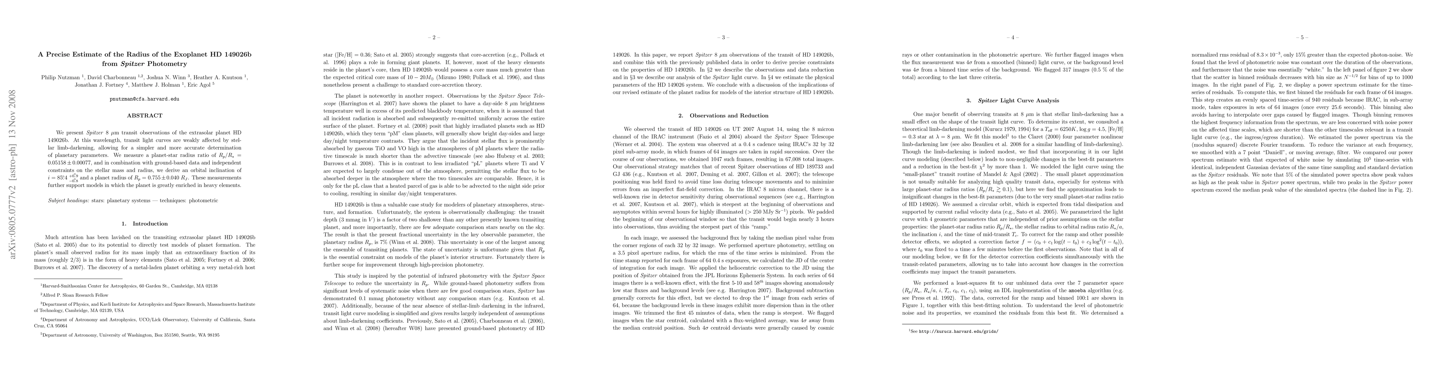 We present Spitzer 8 micron transit observations of the extrasolar planet HD 149026b. At this wavelength, transit light curves are weakly affected by stellar limb-darkening, allowing for a simpler and more accurate determination of planetary parameters. We measure a planet-star radius ratio of Rp/Rs = 0.05158 +/- 0.00077, and in combination with ground-based data and independent constraints on the stellar mass and radius, we derive an orbital inclination of i = 85.4 +0.9/-0.8 degrees and a planet radius of Rp = 0.755 +/- 0.040 R_jup. These measurements further support models in which the planet is greatly enriched in heavy elements.