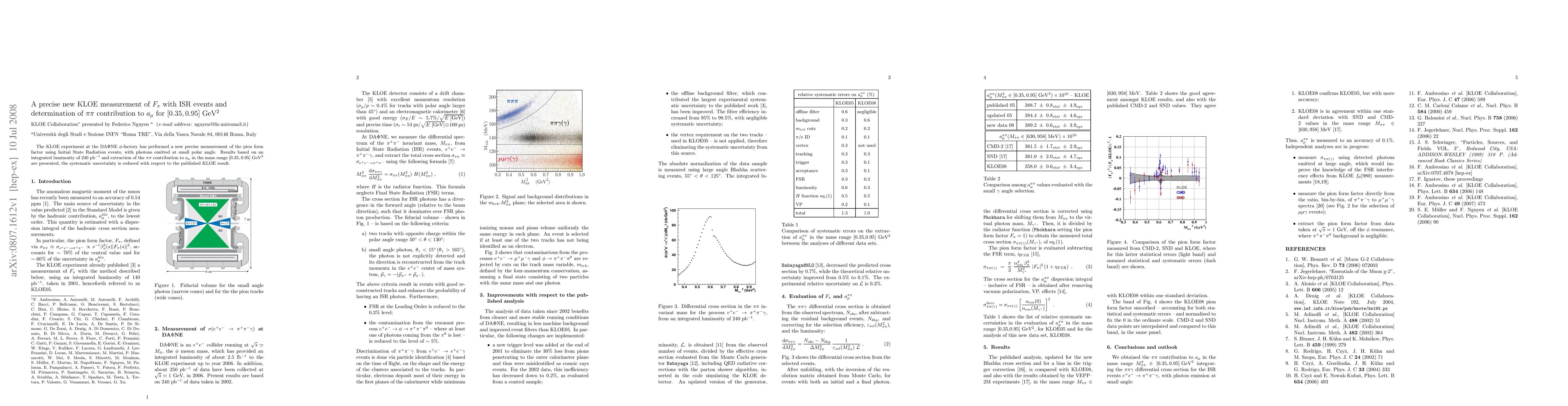 The KLOE experiment at DA$Phi$NE has precisely measured the pion form factor using Initial State Radiation events, reducing systematic uncertainty. The research also determined the $pipi$ contribution to $a_mu$ within the mass range [0.35,0.95] GeV$^2$.