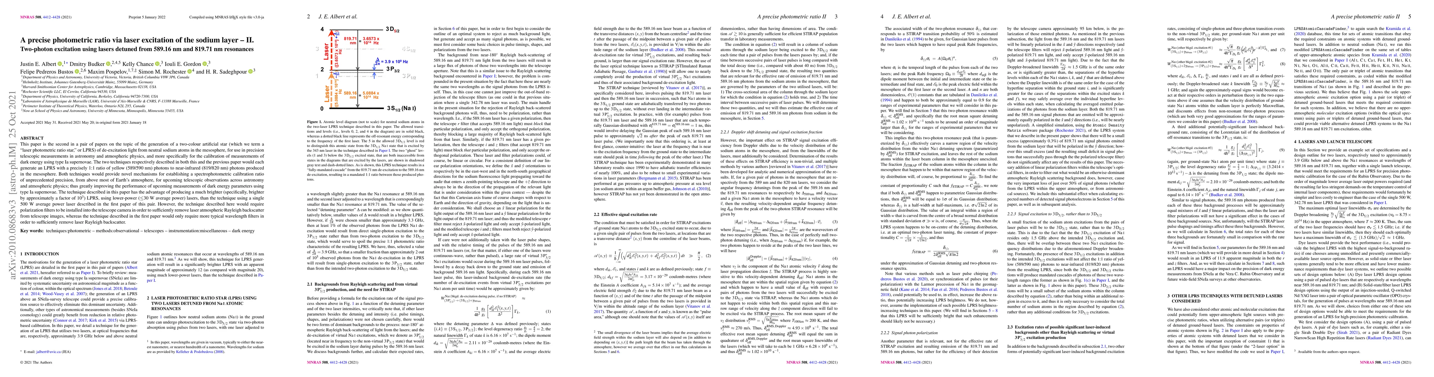 This article is the second in a pair of articles on the topic of the generation of a two-color artificial star (which we term a "laser photometric ratio star," or LPRS) of de-excitation light from neutral sodium atoms in the mesosphere, for use in precision telescopic measurements in astronomy and atmospheric physics, and more specifically for the calibration of measurements of dark energy using type Ia supernovae. The two techniques respectively described in both this and the previous article would each generate an LPRS with a precisely 1:1 ratio of yellow (589/590 nm) photons to near-infrared (819/820 nm) photons produced in the mesosphere. Both techniques would provide novel mechanisms for establishing a spectrophotometric calibration ratio of unprecedented precision, from above most of Earth's atmosphere, for upcoming telescopic observations across astronomy and atmospheric physics. The technique described in this article has the advantage of producing a much brighter (specifically, brighter by approximately a factor of 1000) LPRS, using lower-power (<30 W average power) lasers, than the technique using a single 500 W average power laser described in the first article of this pair. However, the technique described here would require polarization filters to be installed into the telescope camera in order to sufficiently remove laser atmospheric Rayleigh backscatter from telescope images, whereas the technique described in the first article would only require more typical wavelength filters in order to sufficiently remove laser Rayleigh backscatter.