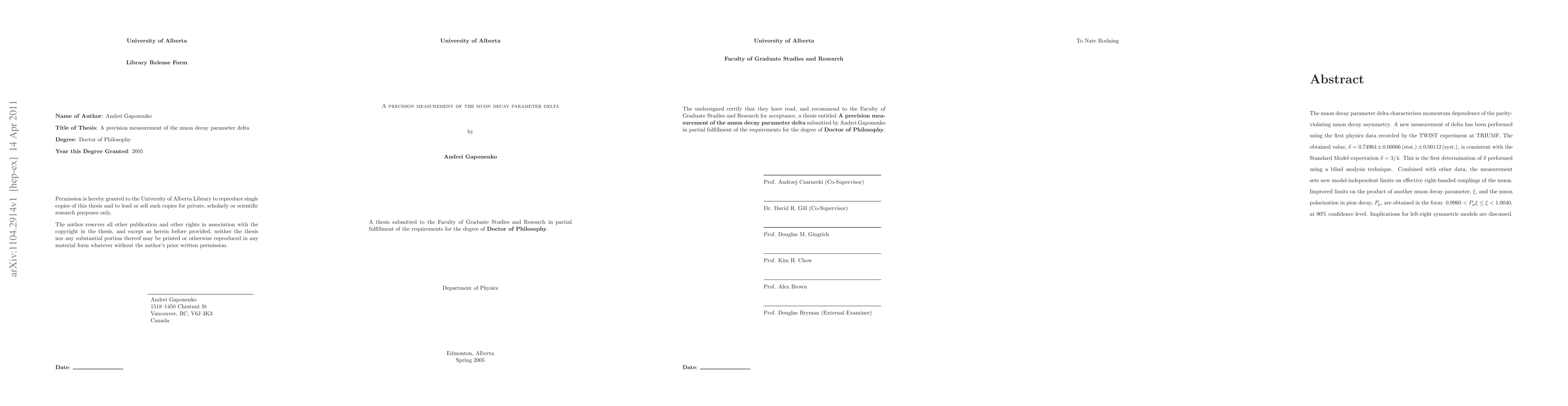 This research provides a precise measurement of the muon decay parameter delta, contributing to the validation of the Standard Model and setting stricter limits on potential new physics beyond it, which could manifest through right-handed couplings.